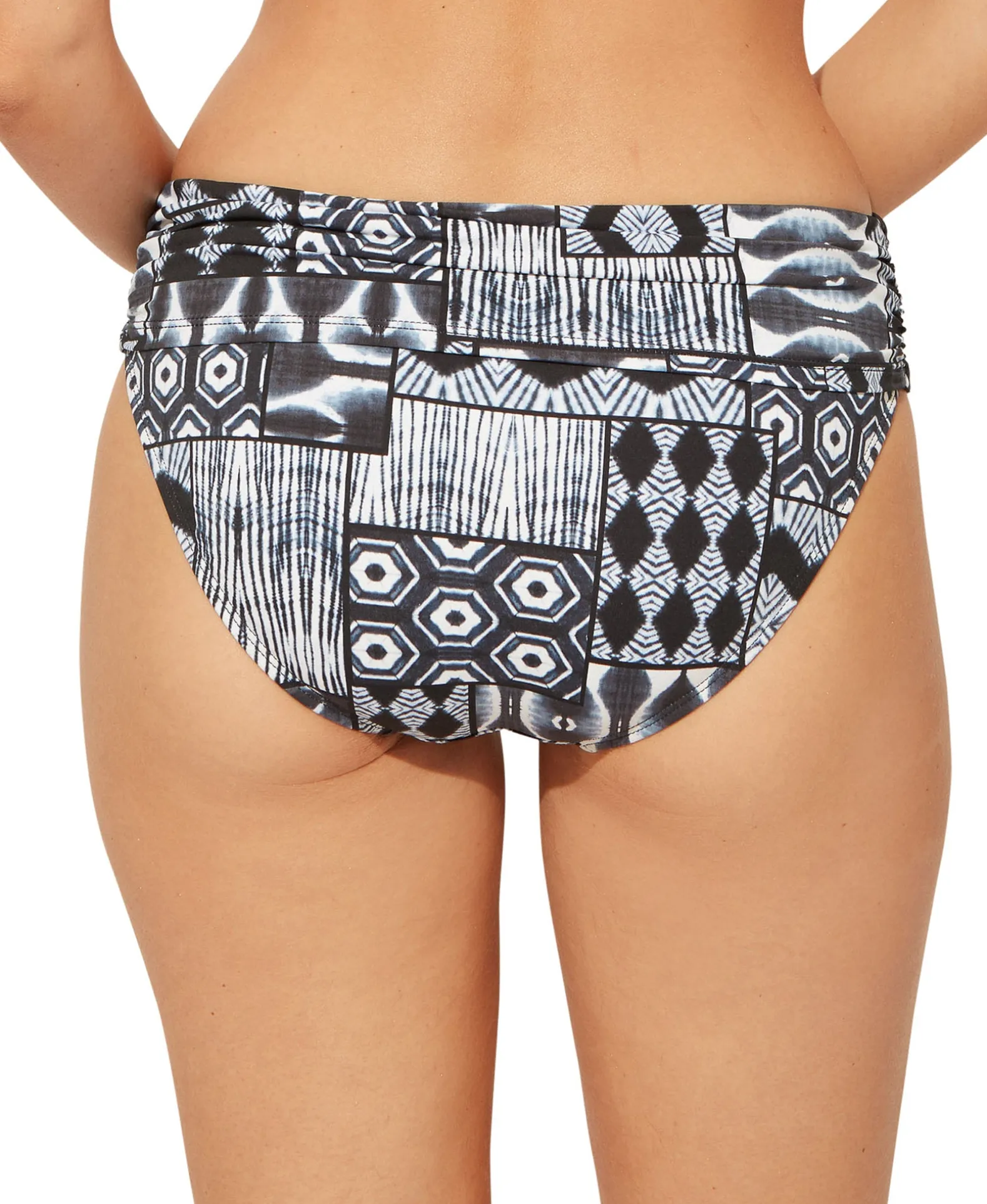 A Standout Print Of Mixed Patterns Brings Bold Style To The Shore. This Hipster Bikini Bottom From Bleu By Rod Beattie Features A Ruched Crossover Waistband, Too.