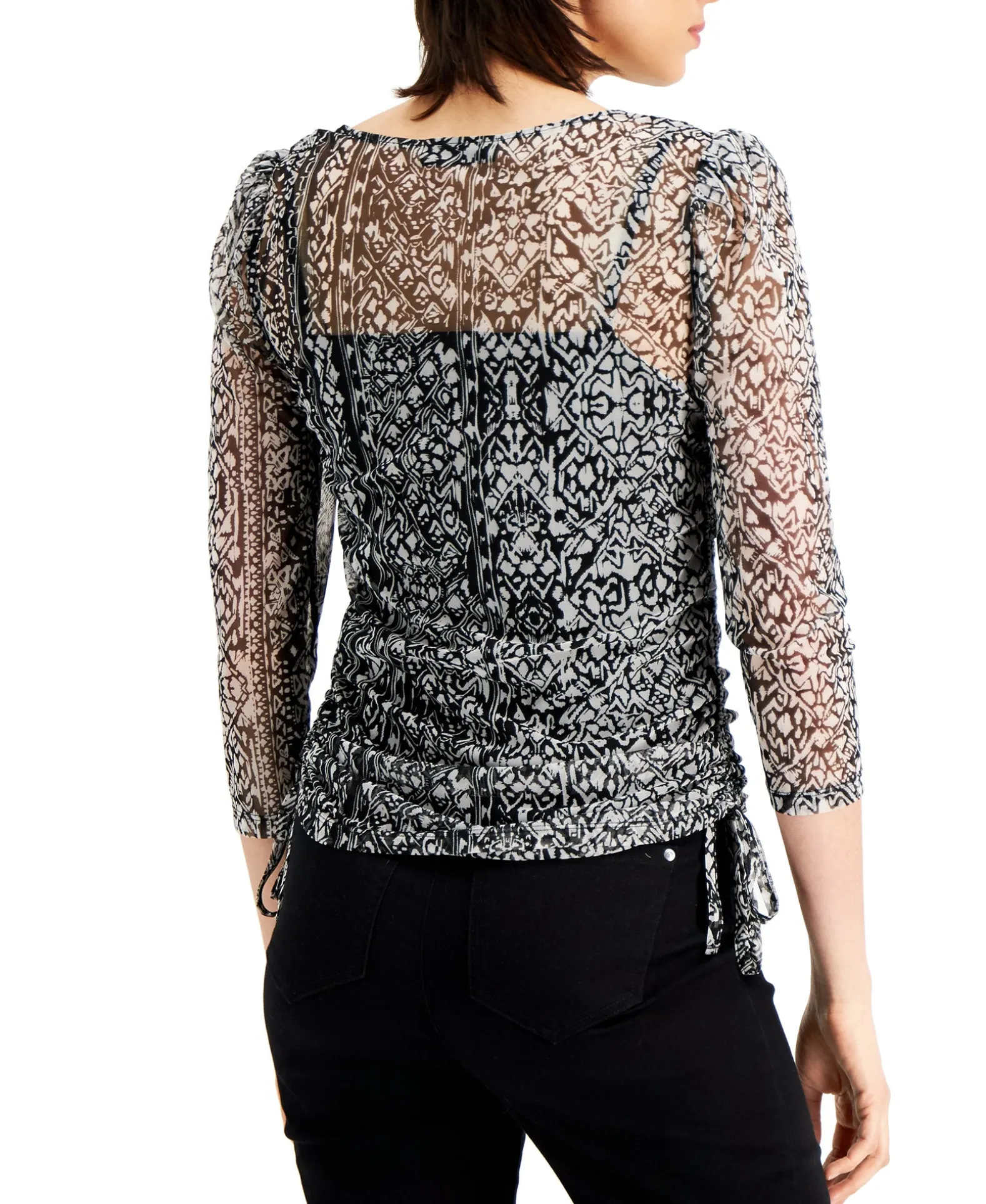 Puffed Shoulders And 3/4-Length Sleeves Add Elegance To A Printed Top From INC International Concepts®. Drawstrings At The Sides Of The Hem Allow For An Adjustable Fit.