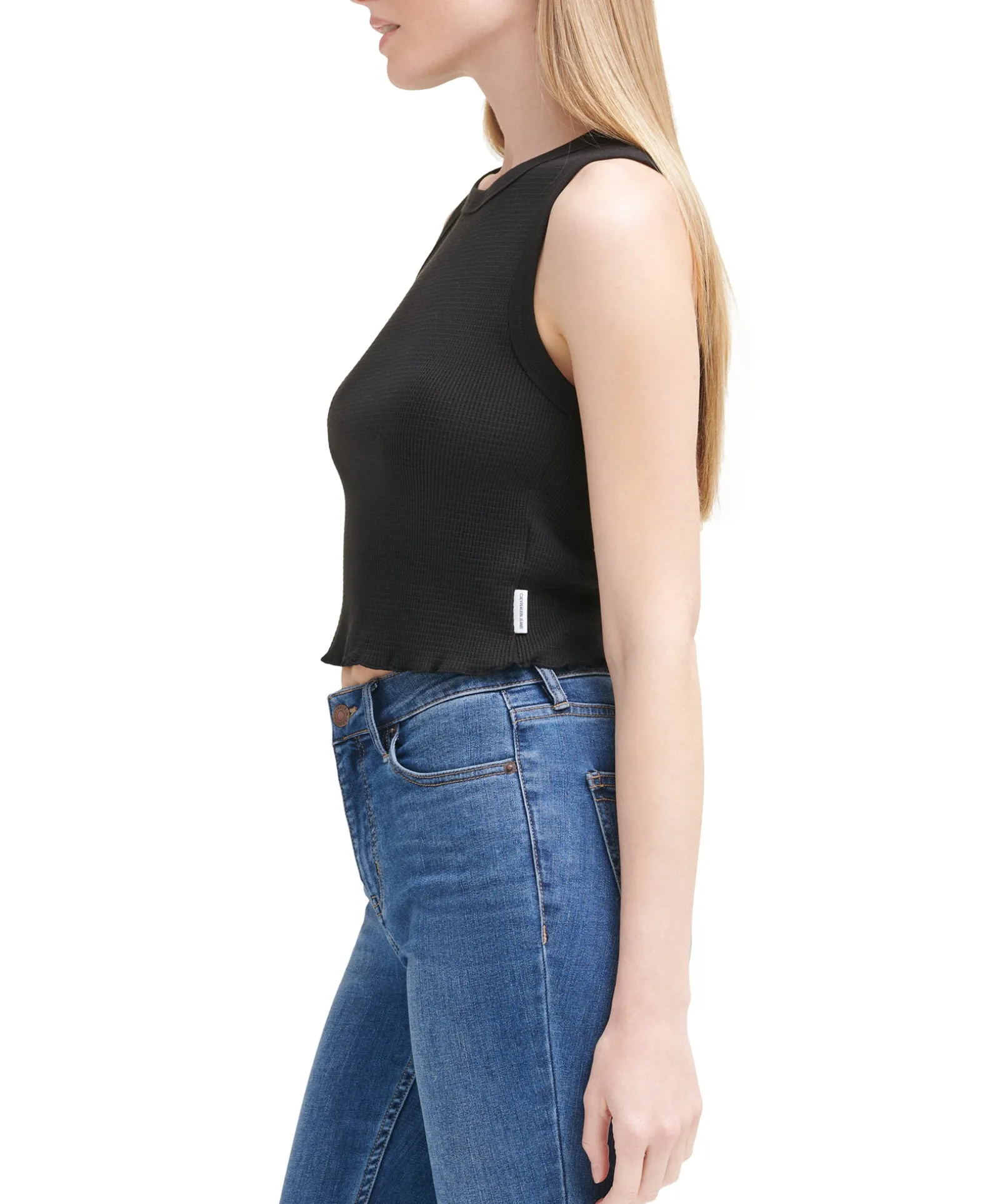 Designed With The Waffle Knit Coziness Of Your Favorite Thermal Top, Calvin Klein Jeans’ Sleeveless Crop Top Is The Perfect Base Layer For Any Casual Outfit.