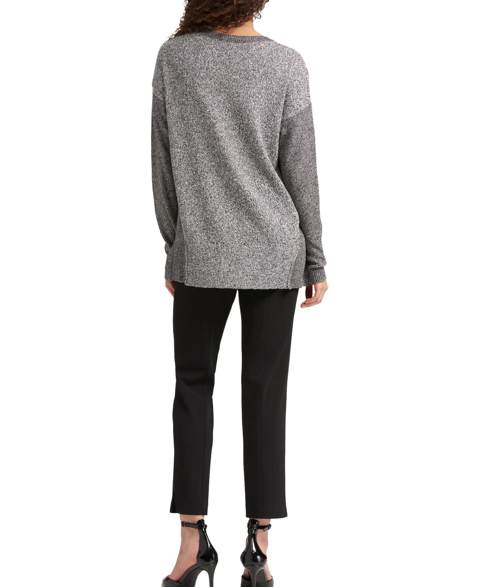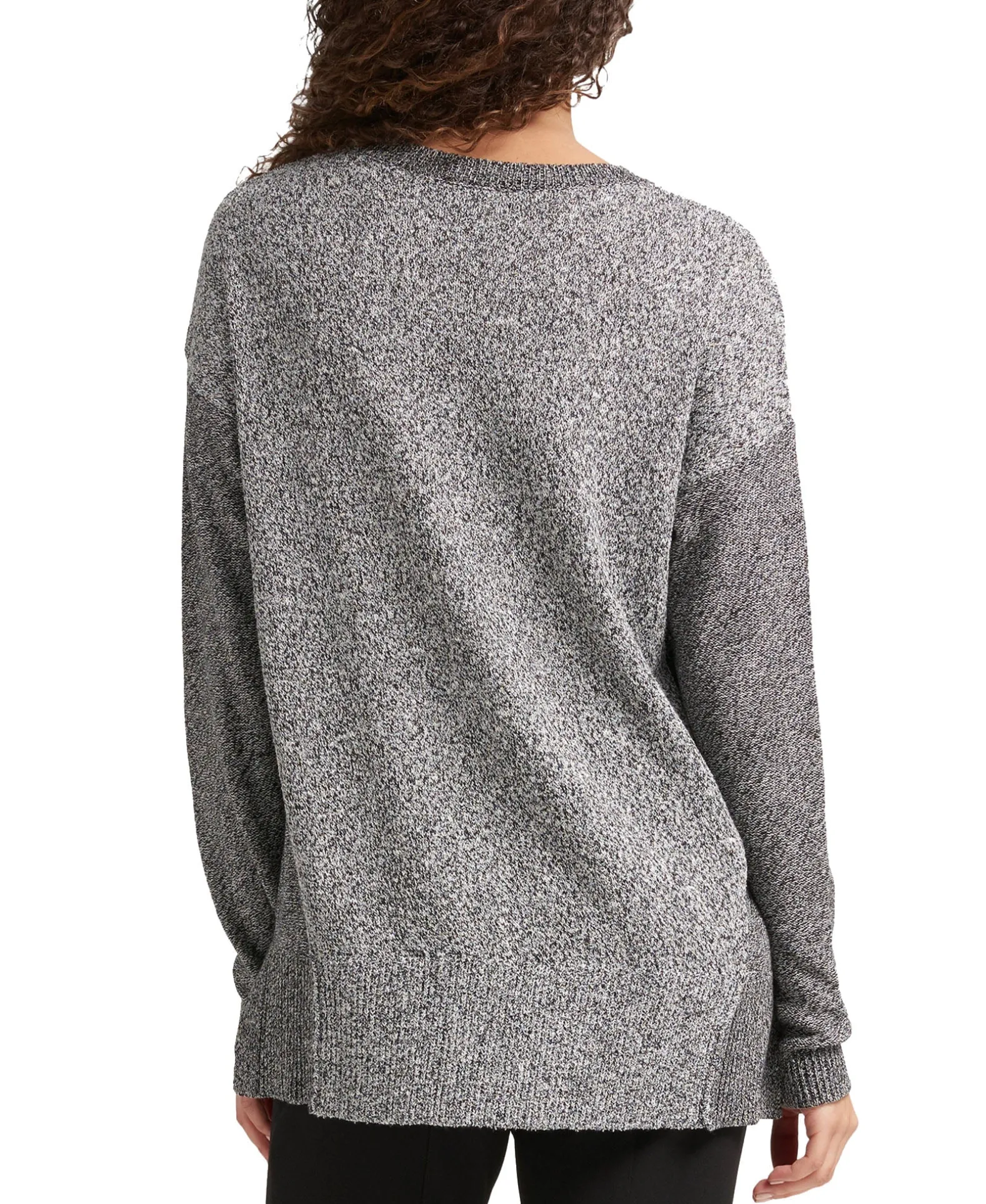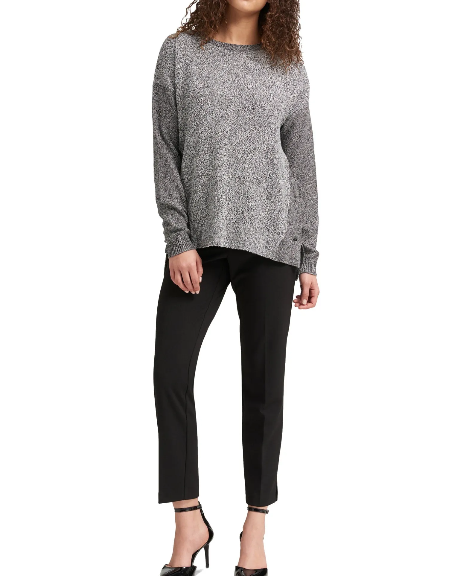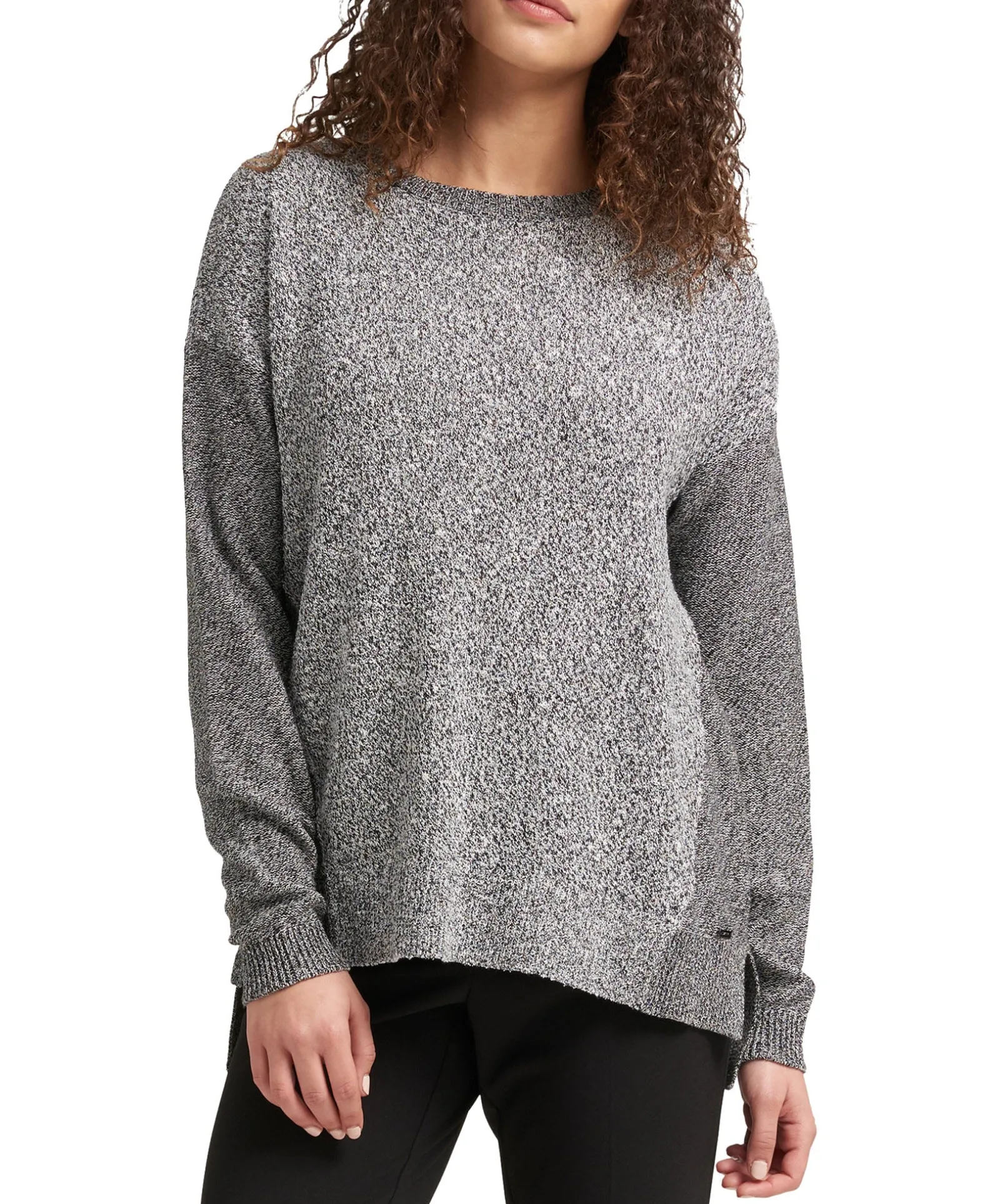a contemporary step hem adds effortless coverage to this cozy, versatile crewneck sweater from dkny.