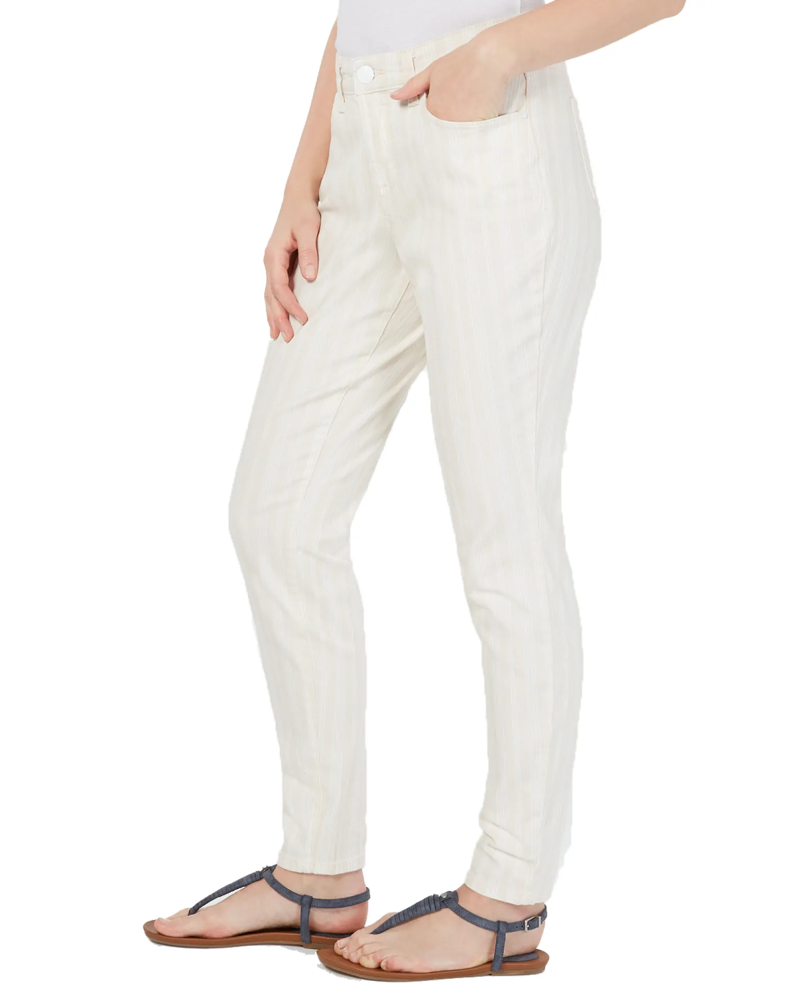 Fashioned in a subtle striped stretch-enhanced cotton, these curvy skinny fit jeans from Style & Co add a fresh look to your denim collection.