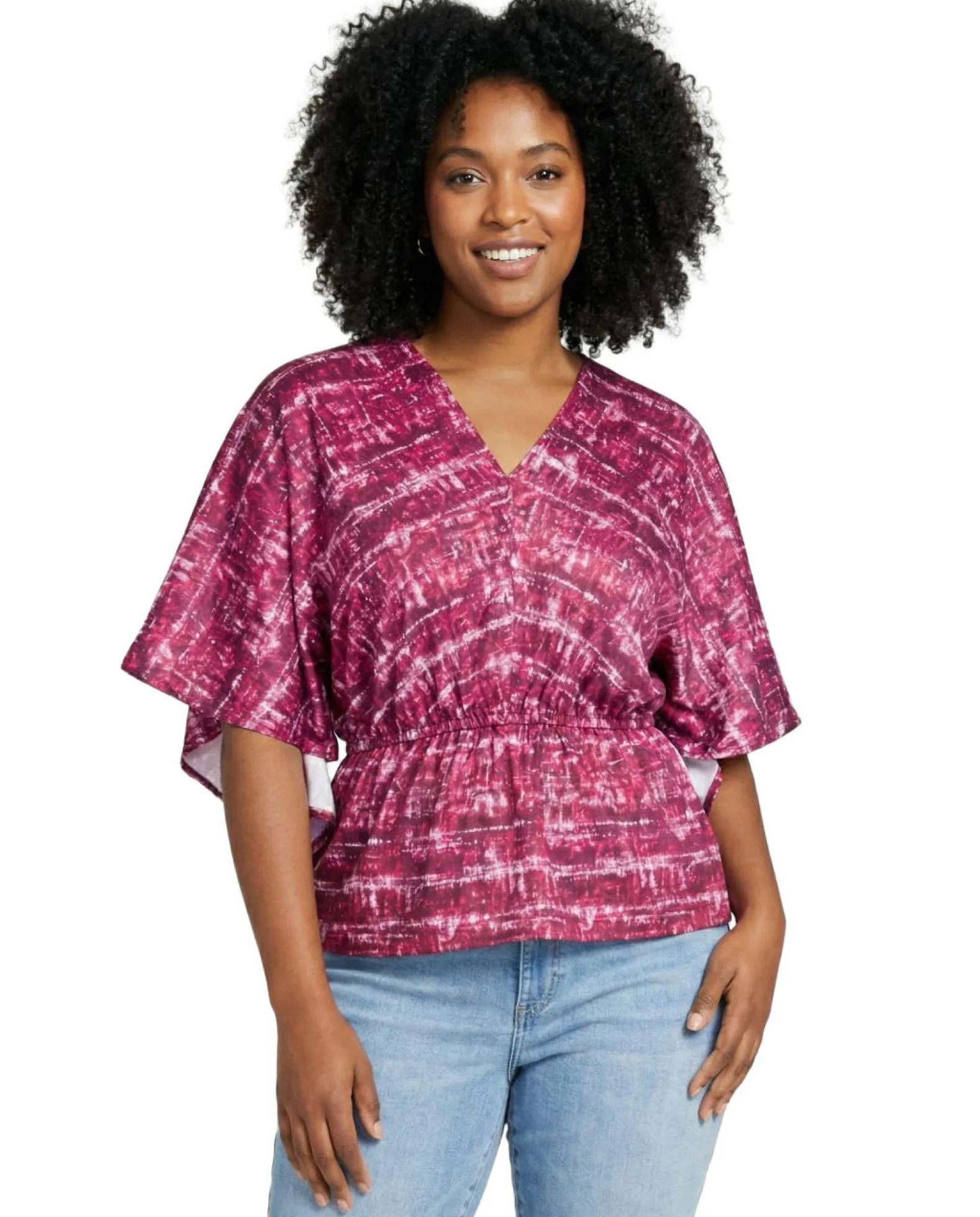 Framed By Flowing Batwing Sleeves And Finished With An Elastic Waistband For A Defined Silhouette, Alfani’s V-Neck Top Is Brightened With Bold Stripes For A Colorful Moment.