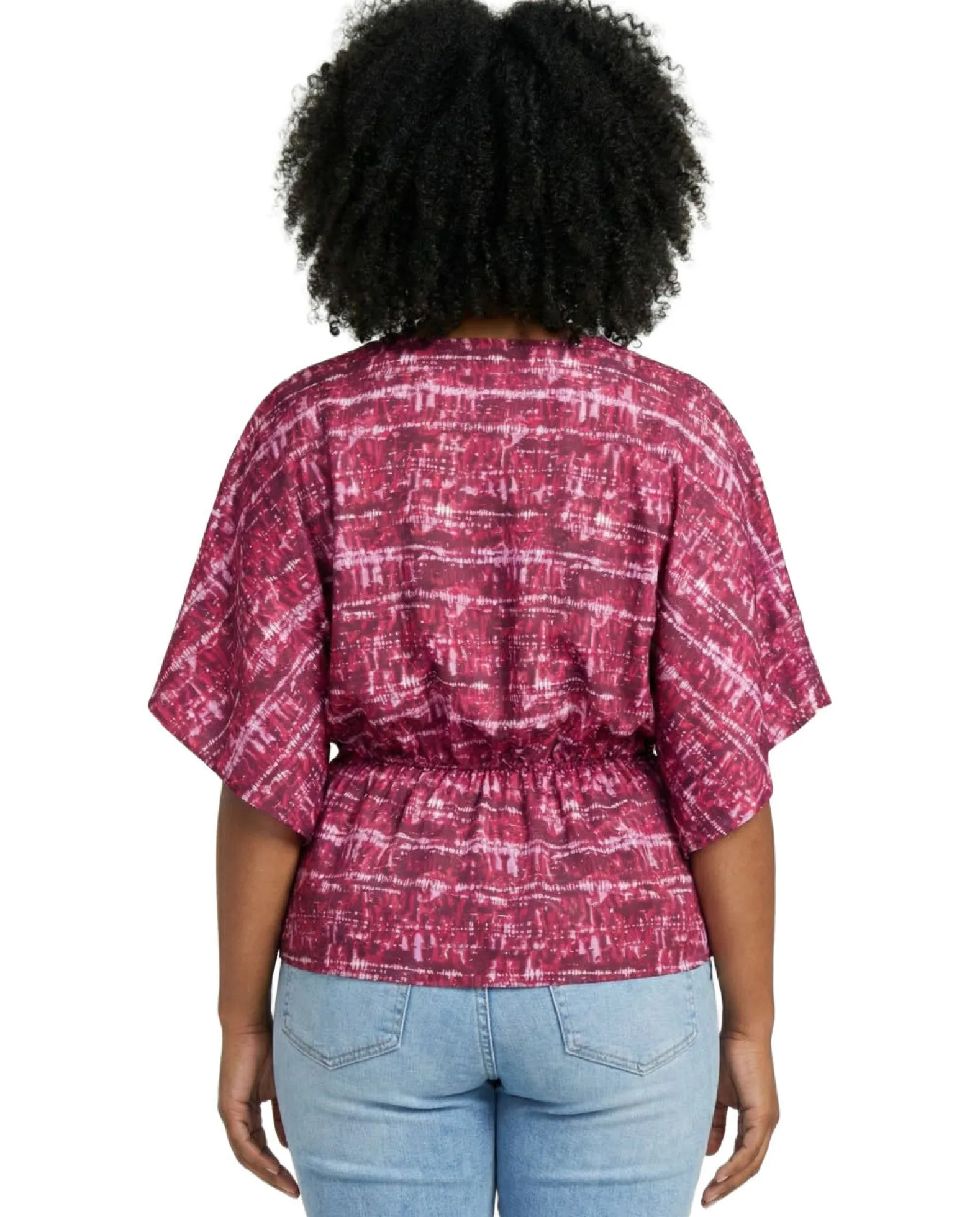 - Elbow-length batwing sleeves