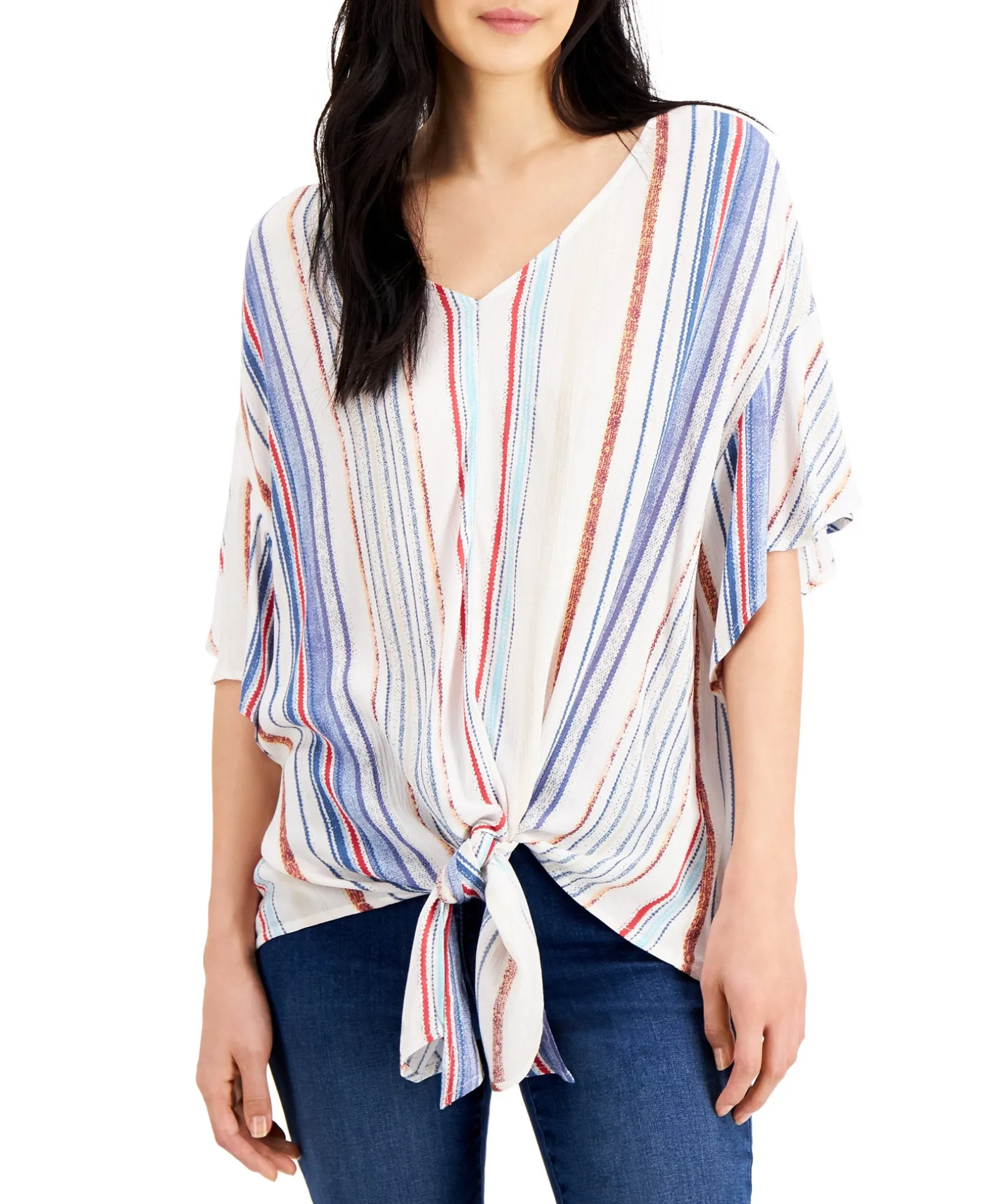 Colorful Stripes Enhance The Breezy Feel Of This JPR Studio Top, A Fresh Look With A Trend-Right Tie At The Front Hem.