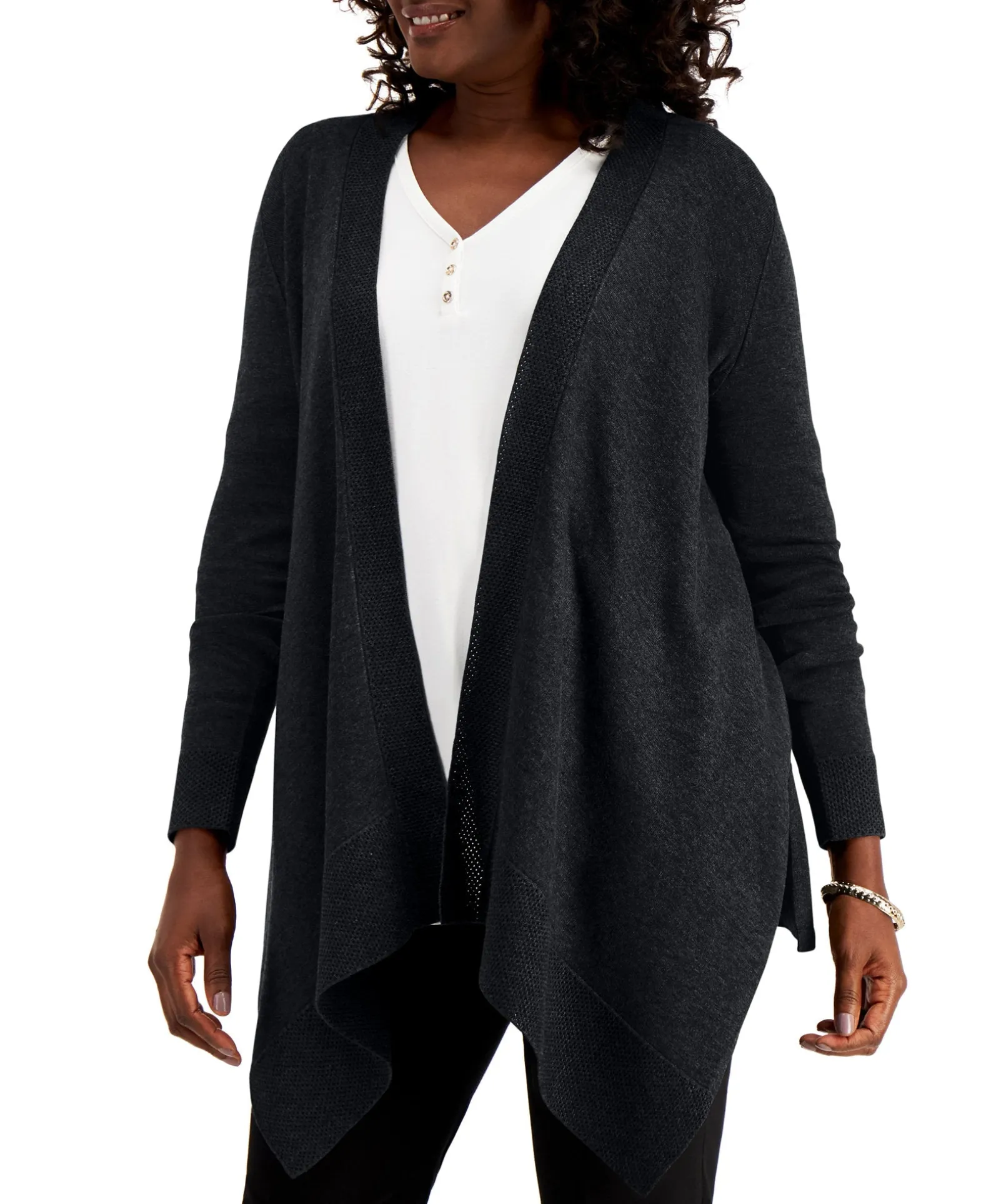 Perfectly On-Trend, This Open-Front Cardigan From JM Collection Features Long Draping In The Front.