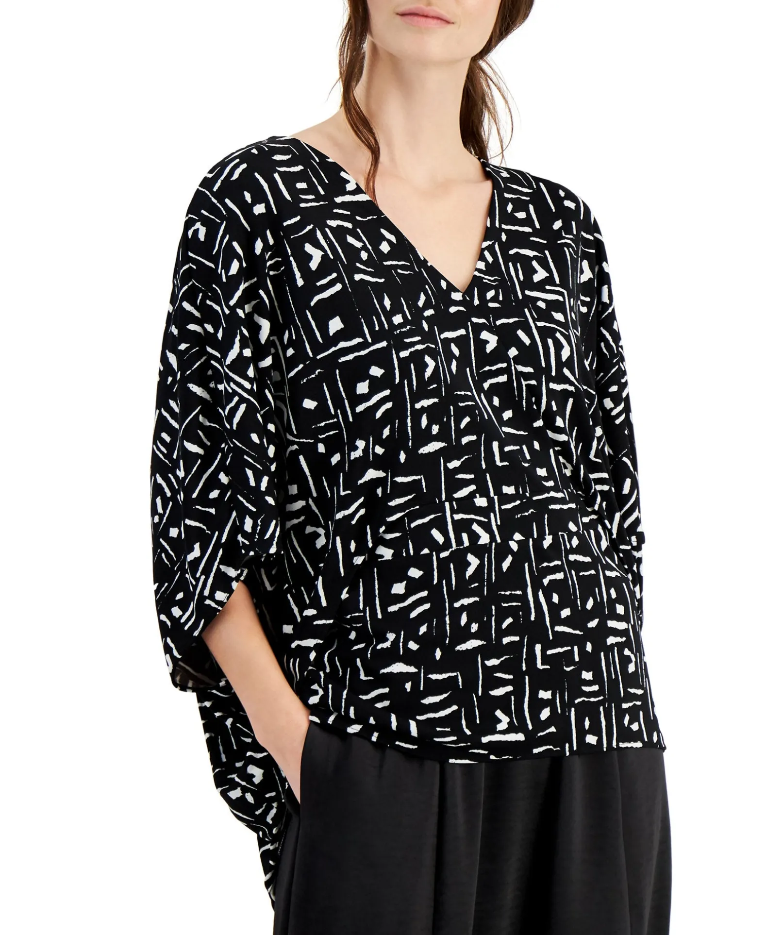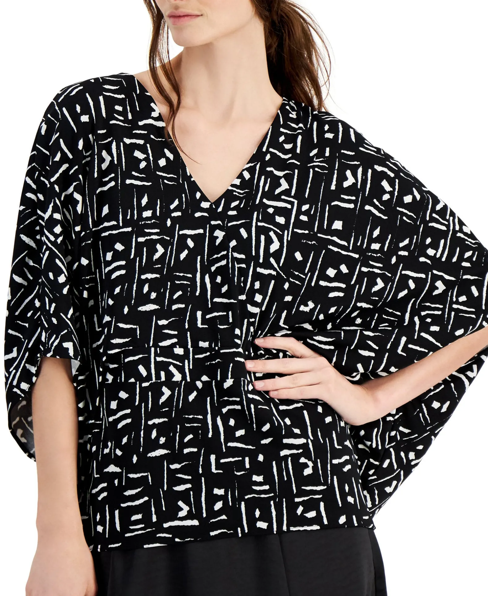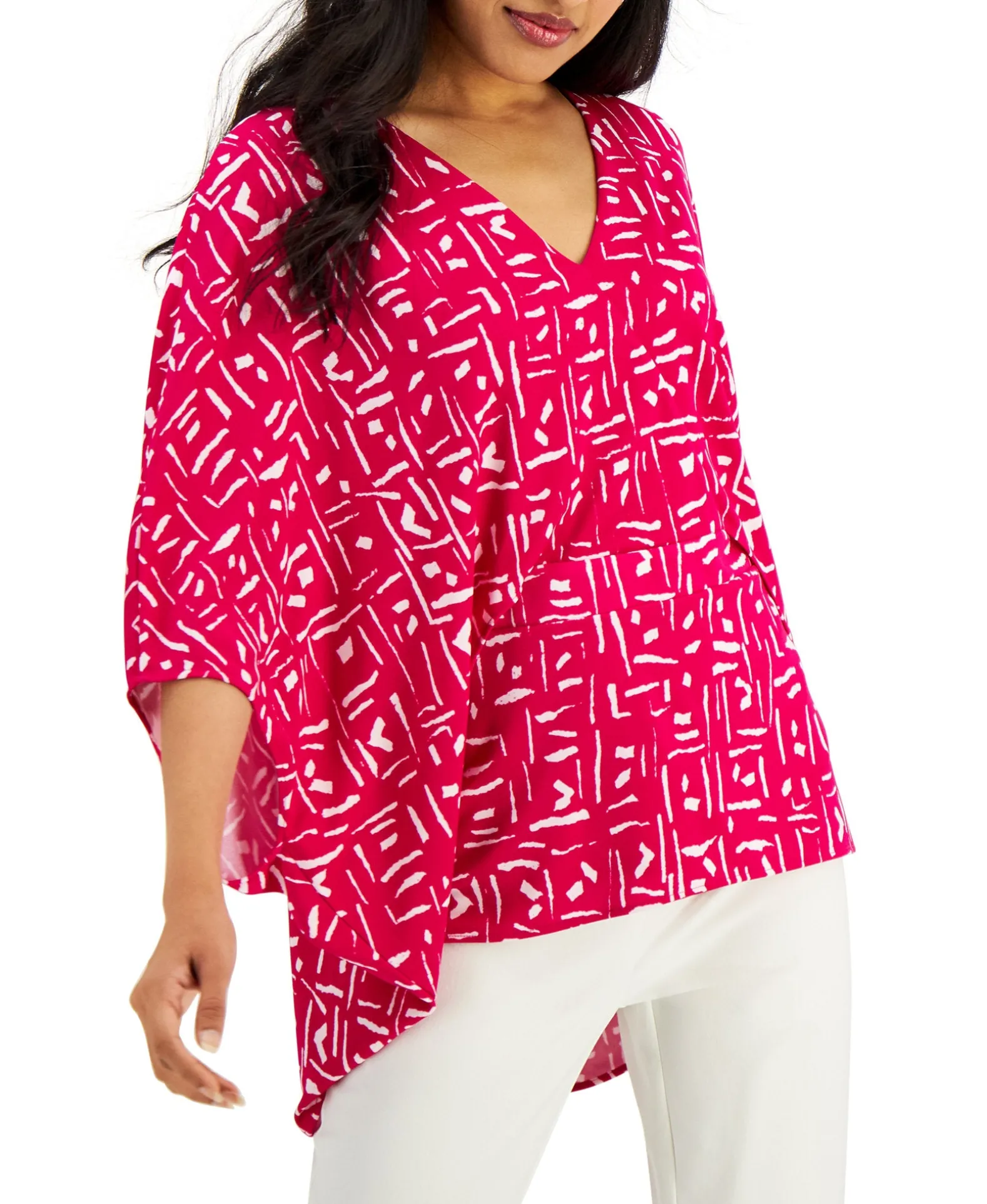 Add Artistic Appeal To Every Outfit With Alfani’s Chic V-Neck Top, A Breezy Batwing-Sleeve Design Decorated With A Unique Painterly Print.