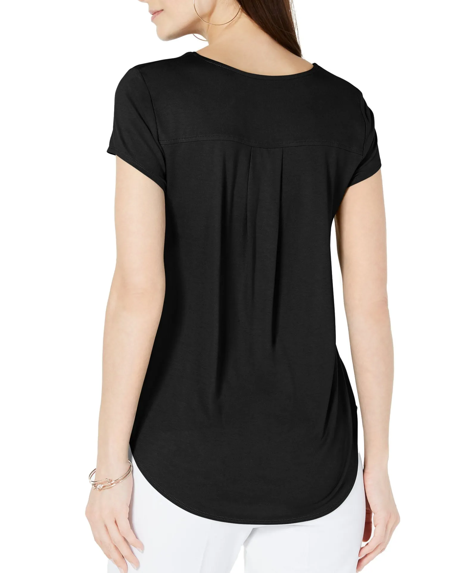 Not Too Tight, Not Too Loose…This Alfani V-Neck Knit Top Hits All The Right Notes With A Fluid, Flattering Drape And A Curved Hemline.