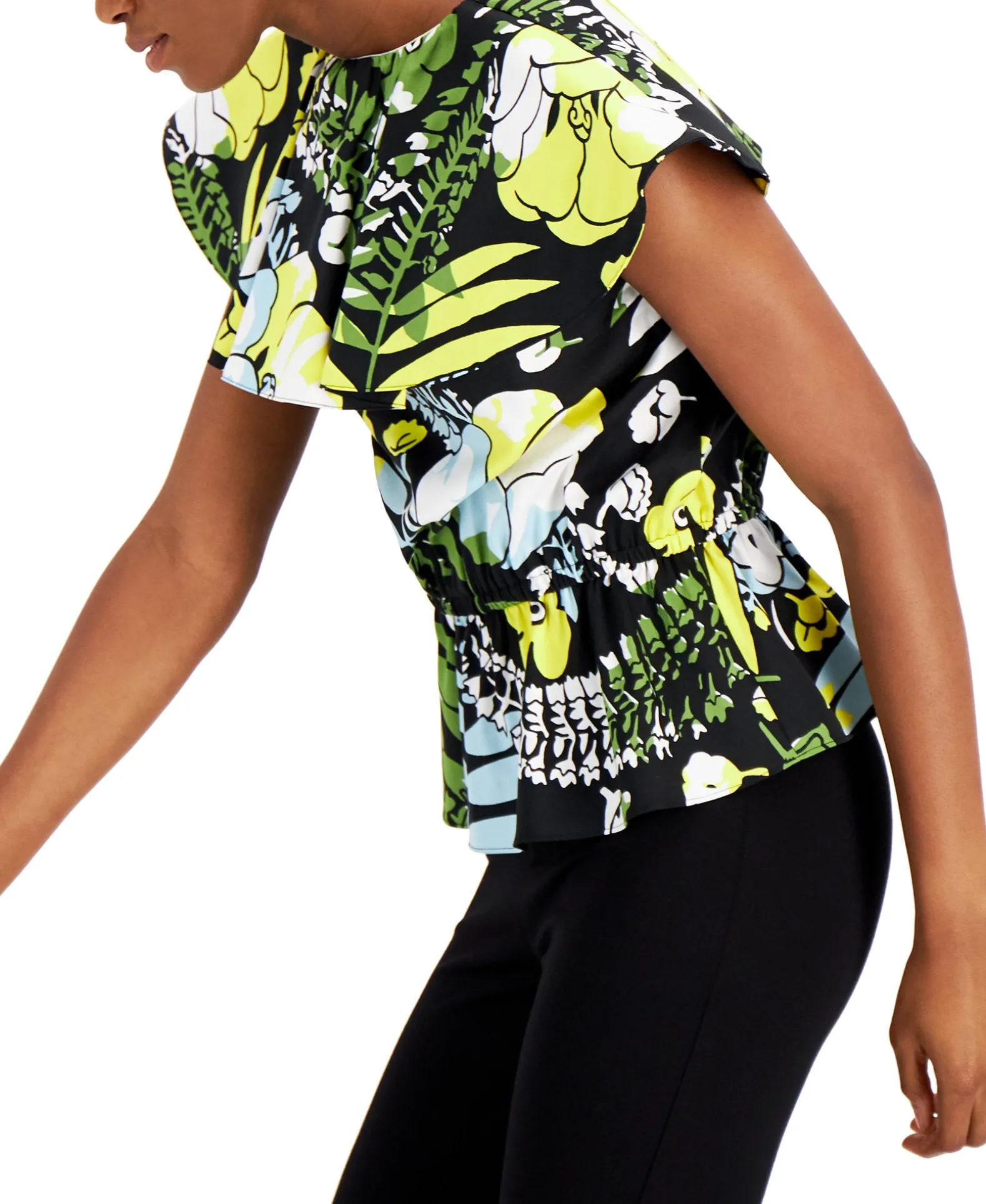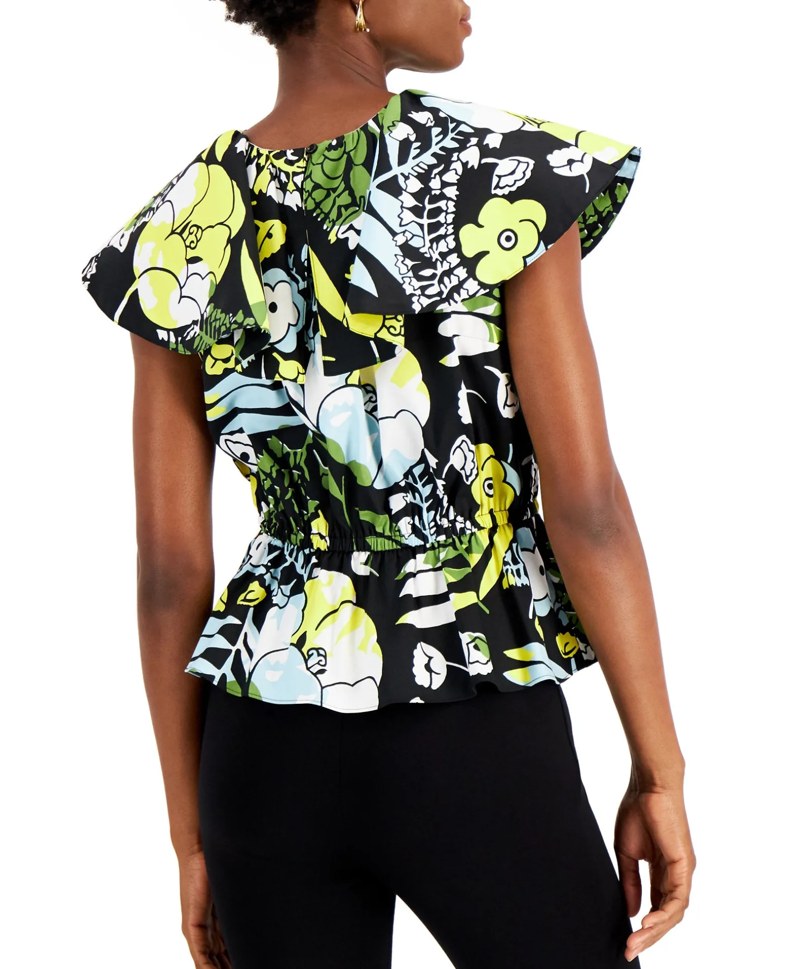 INC International Concepts® Kicks Your Casual Look Up A Notch With This Beautifully Printed Top Designed With A Exaggerated Collar And A Waist-Defining Silhouette.