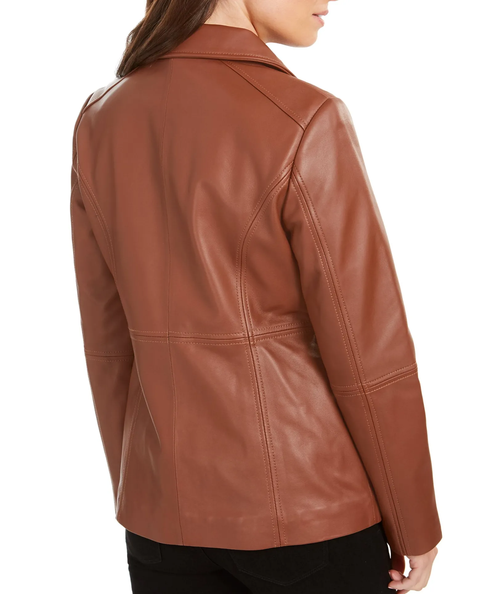 The leather coat: luxe, cool and totally timeless. Anne Klein’s sophisticated take on the look is complemented by polished hardware and a sleek silhouette.