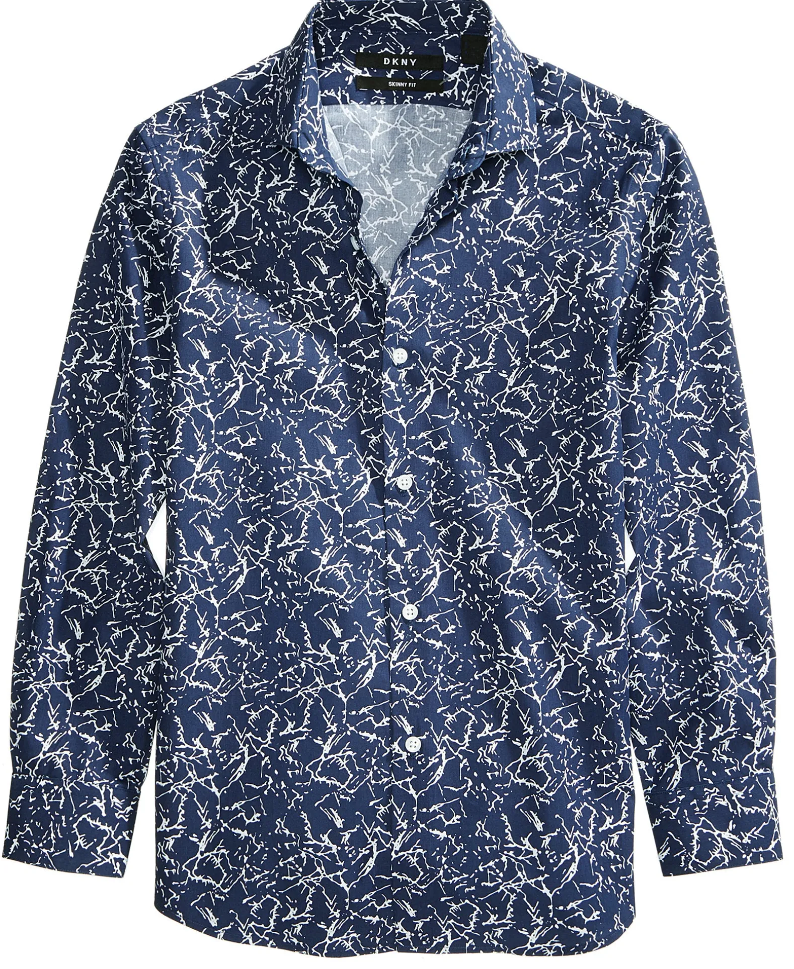 Dress him up in modern style with the marbled design of this long-sleeve button-down shirt from DKNY.