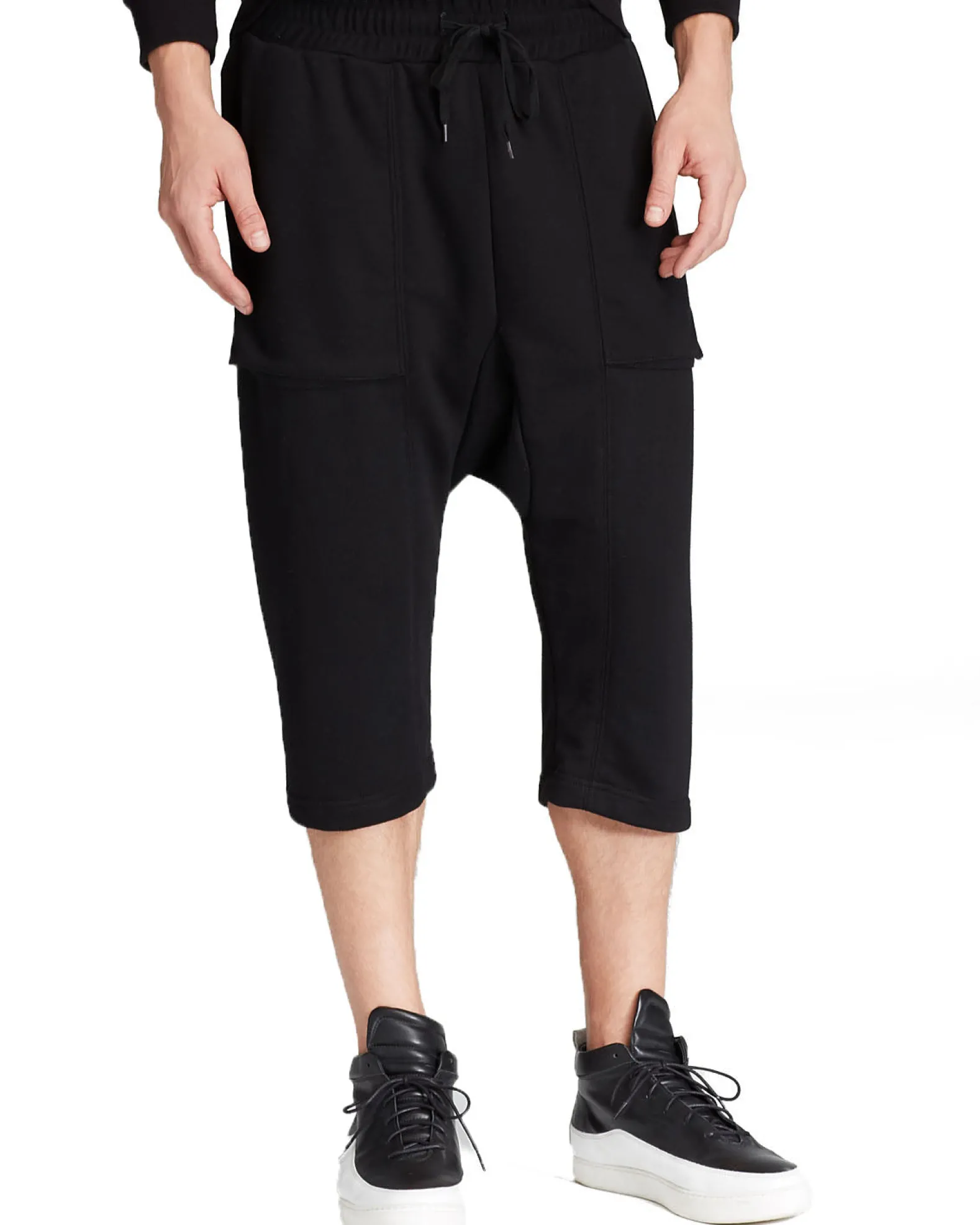 Score a style slam dunk in these achingly-cool drop-crotch shorts from Black Apple, the other brand from the design duo behind celebrated label Public School.