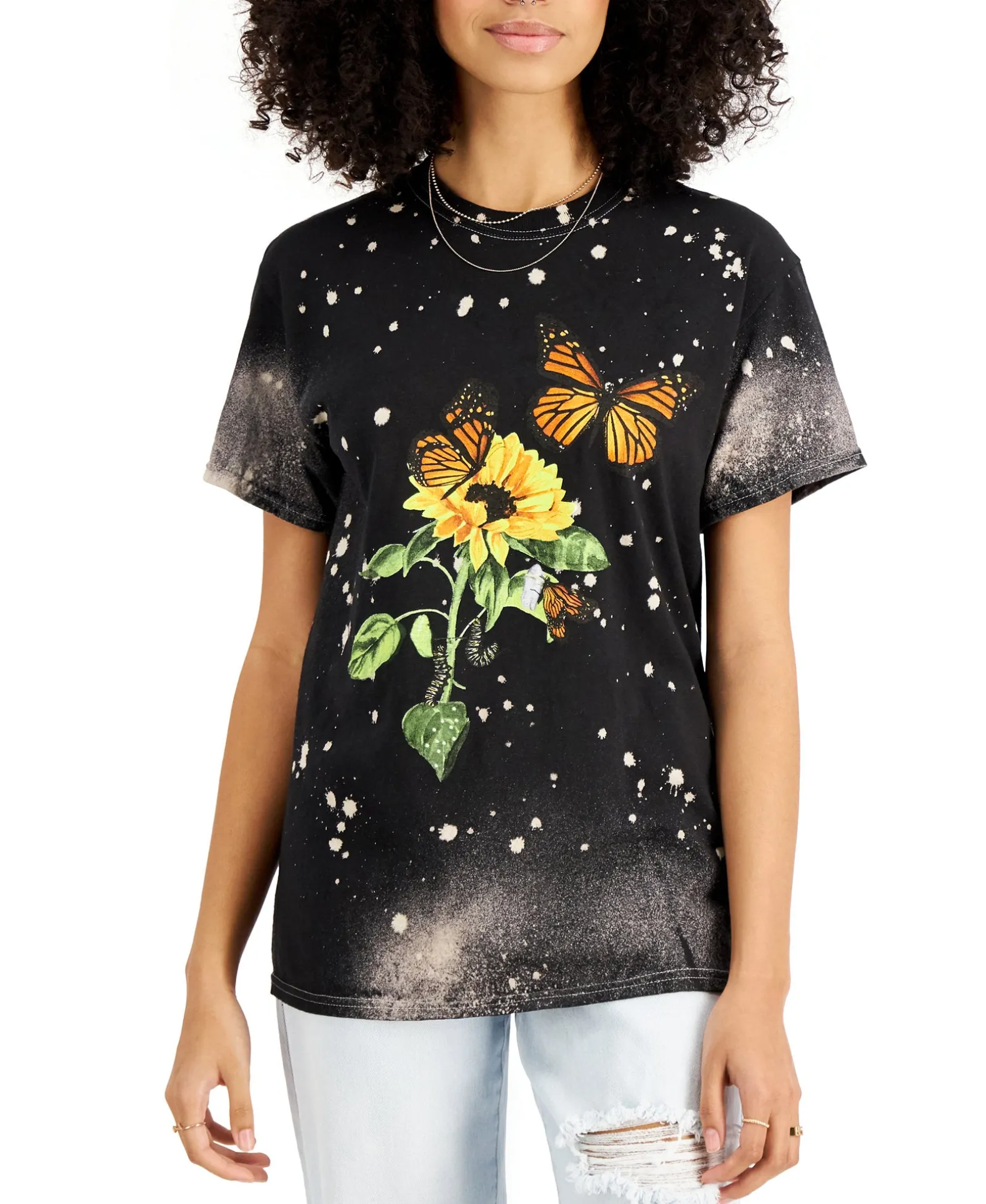 Bleach Splatters And The Prettiest Butterfly Print Add A Cool Look To This All-Cotton T-Shirt From Love Tribe.