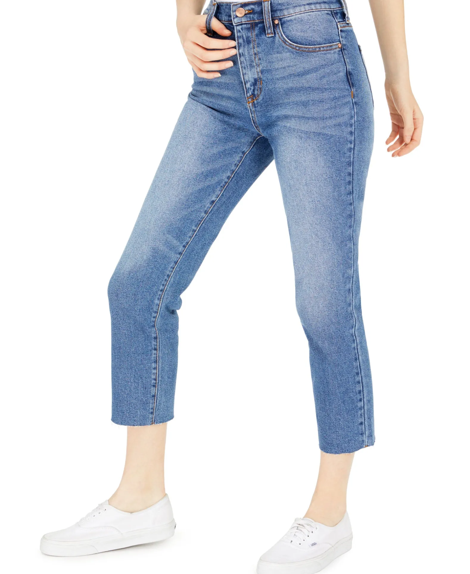 Celebrity Pink Brings Denim Style To Your Warm-Weather Wardrobe With These Cropped Jeans, Styled With Straight Legs And Raw-Edge Hems.