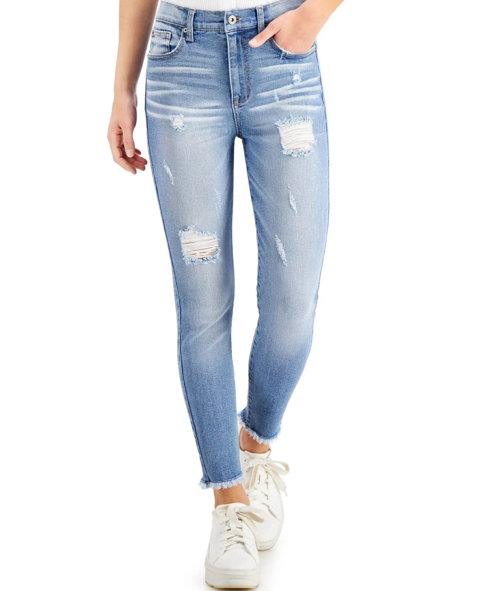Effortless, Rocker-Chic Style Is Always On Hand With These Ripped, Shredded-Hem Jeans From Celebrity Pink.