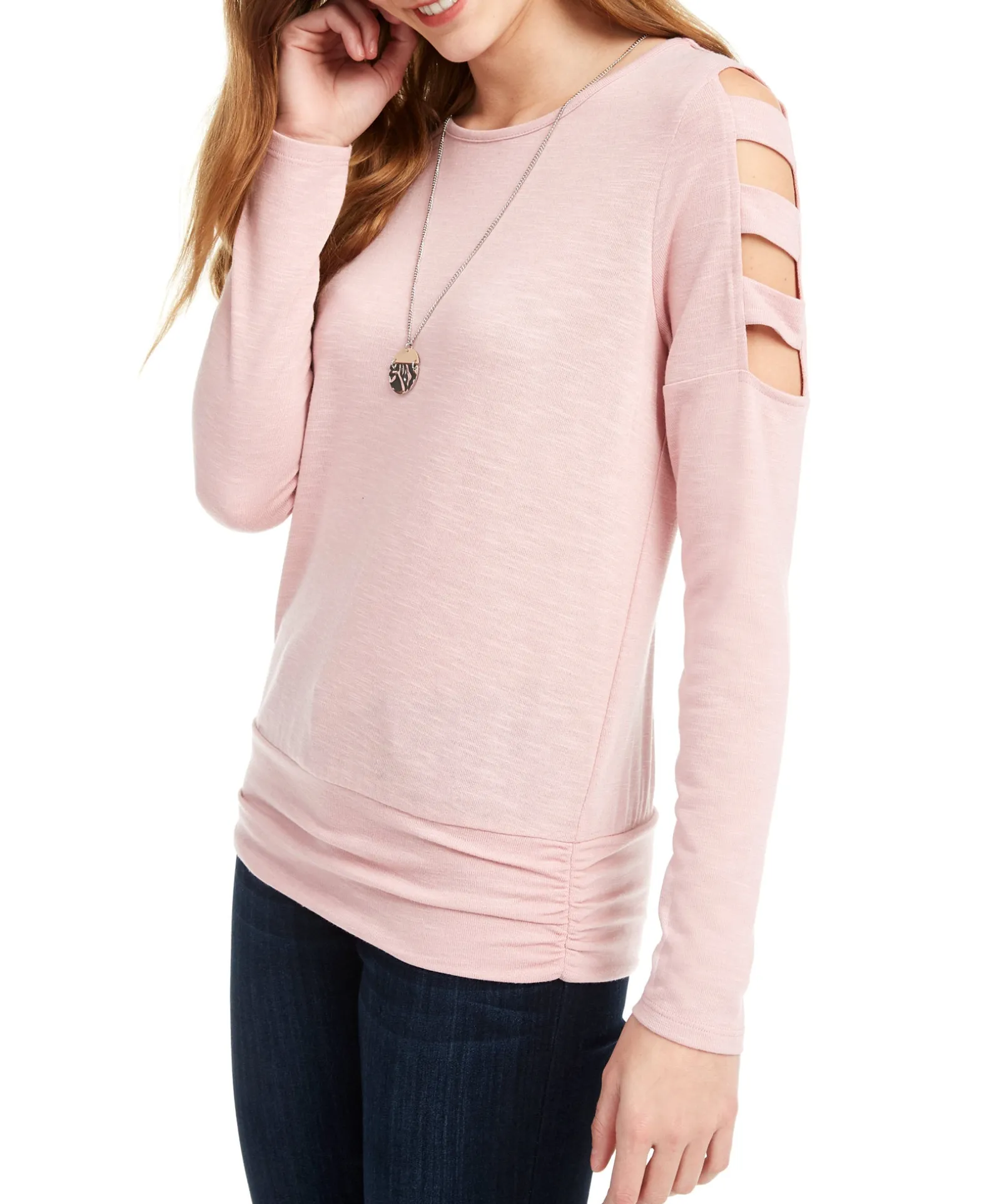 Up The Fun Factor Of Your Enviable Style With This BCX Top Designed With Cool Lattice-Inspired Cutouts At Each Sleeve.