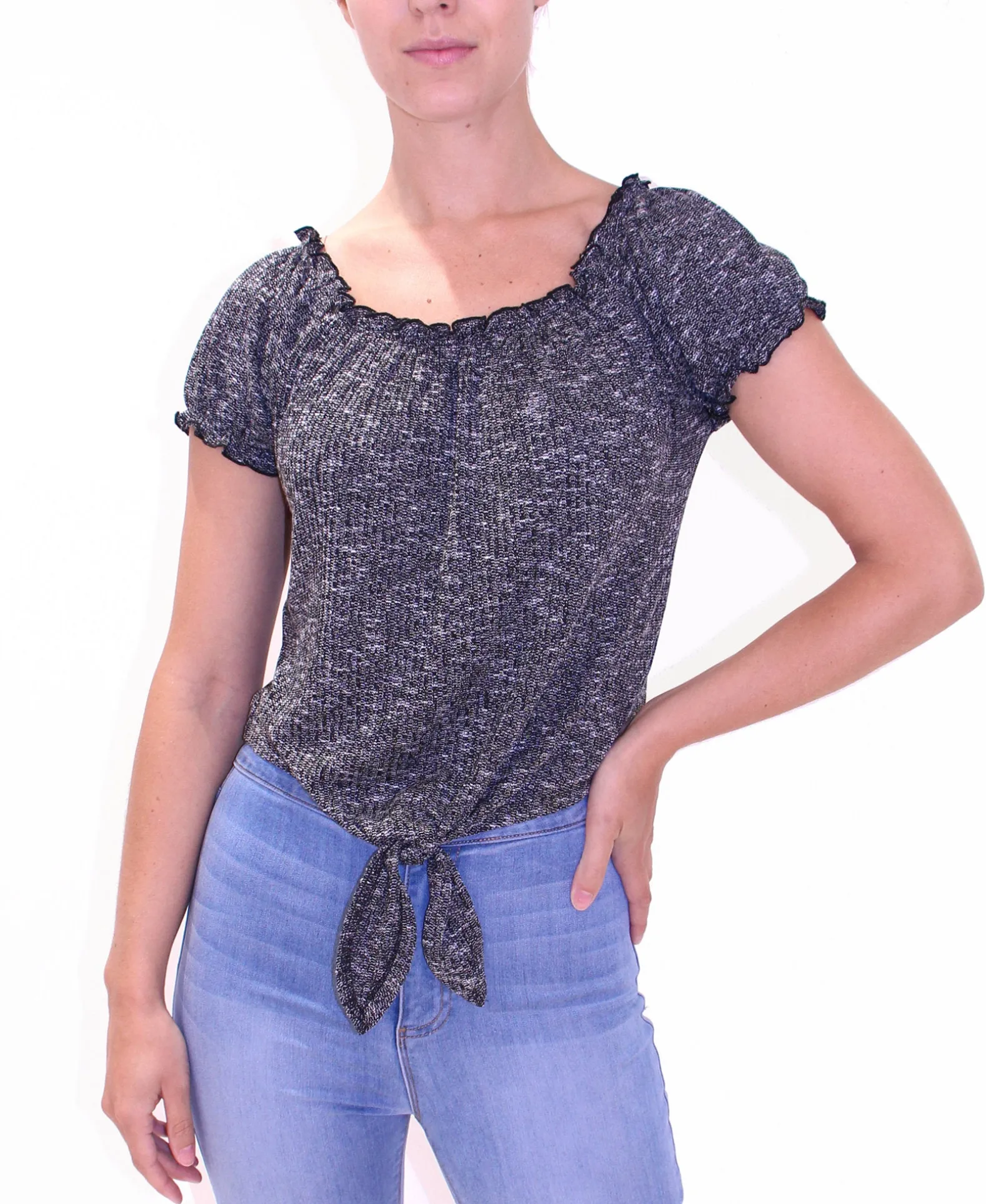 You’ll Be Ready For Whatever The Day Brings In This Juniors’ Top From Crave Fame, With A Tie At The Front And Gorgeous Puff Sleeves.