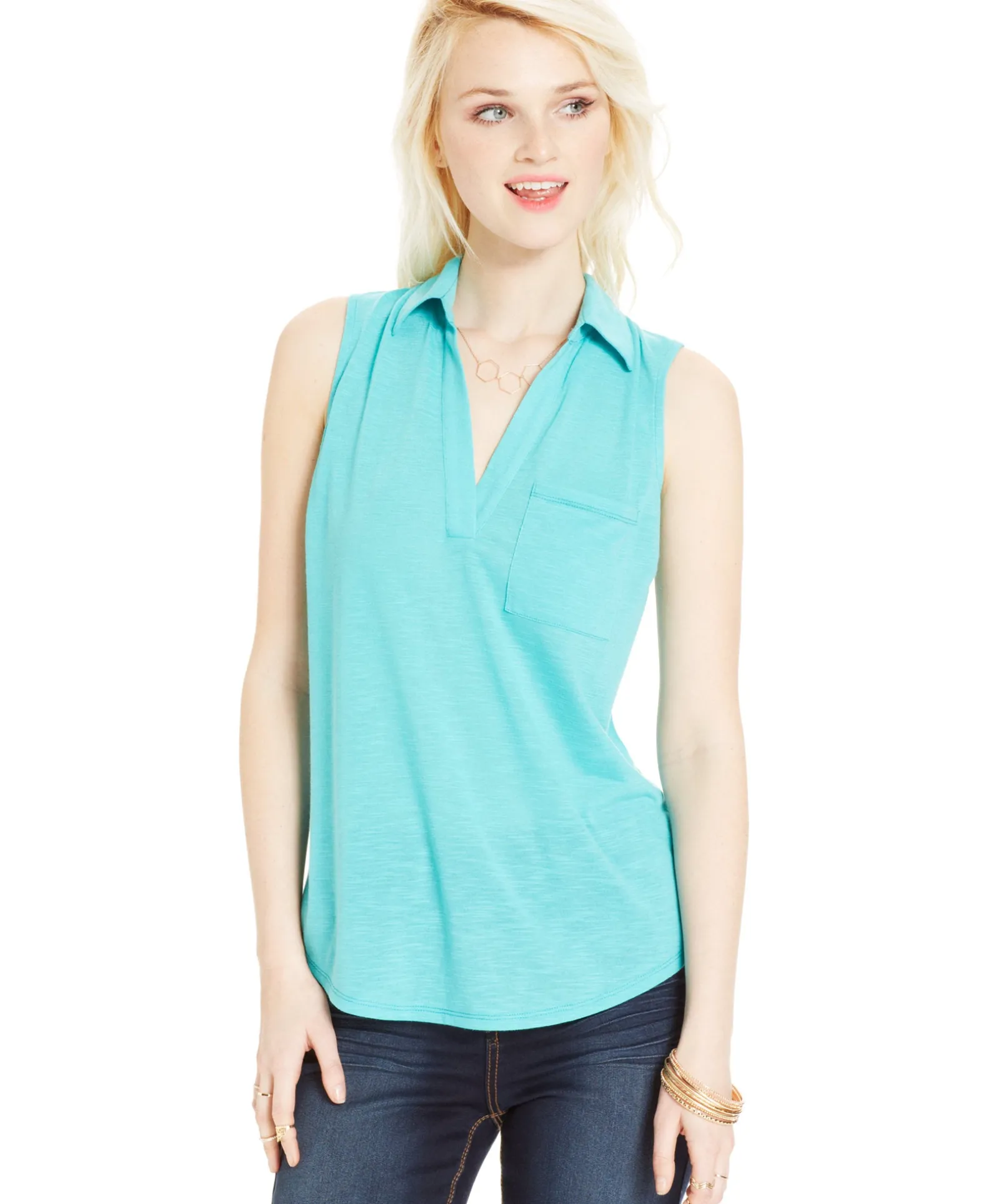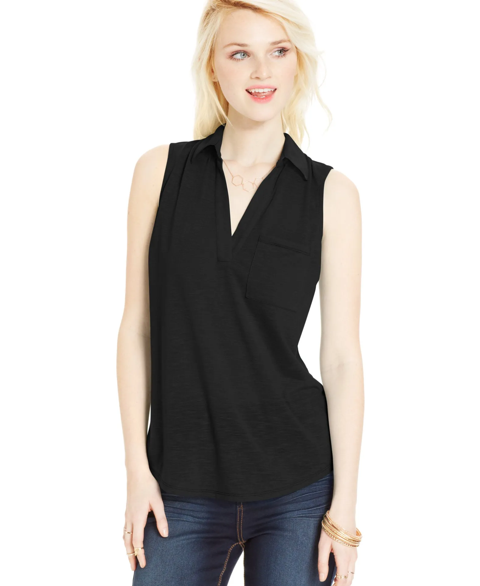Comfort and style meet in this Almost Famous Juniors’ Slub-knig Sleeveless Top.