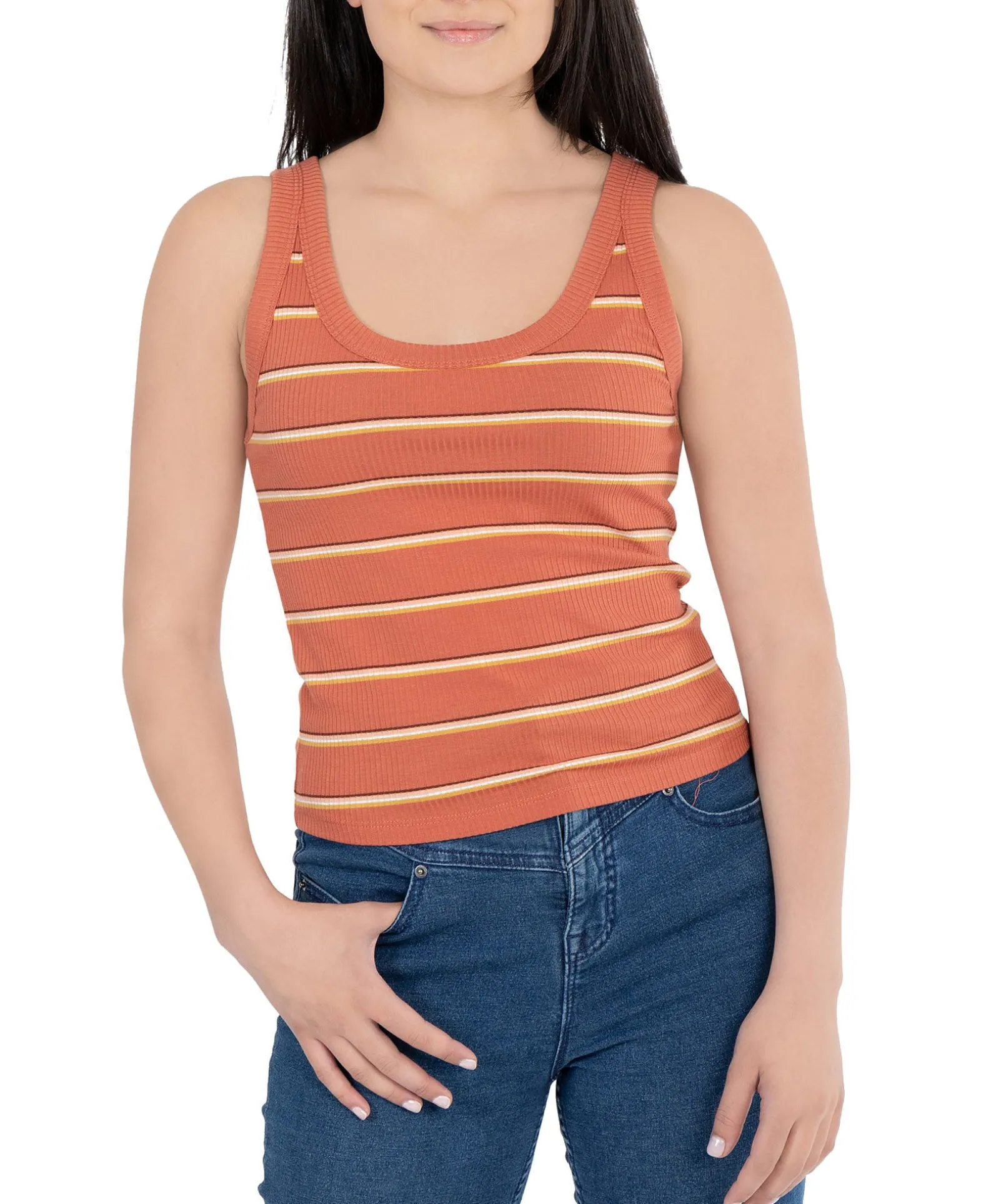 Hippie Rose Brings Versatility To Your Warm-Weather Wardrobe With This Striped Tank Top, Rendered In Rib-Knit Fabric And Featuring Solid Trim.