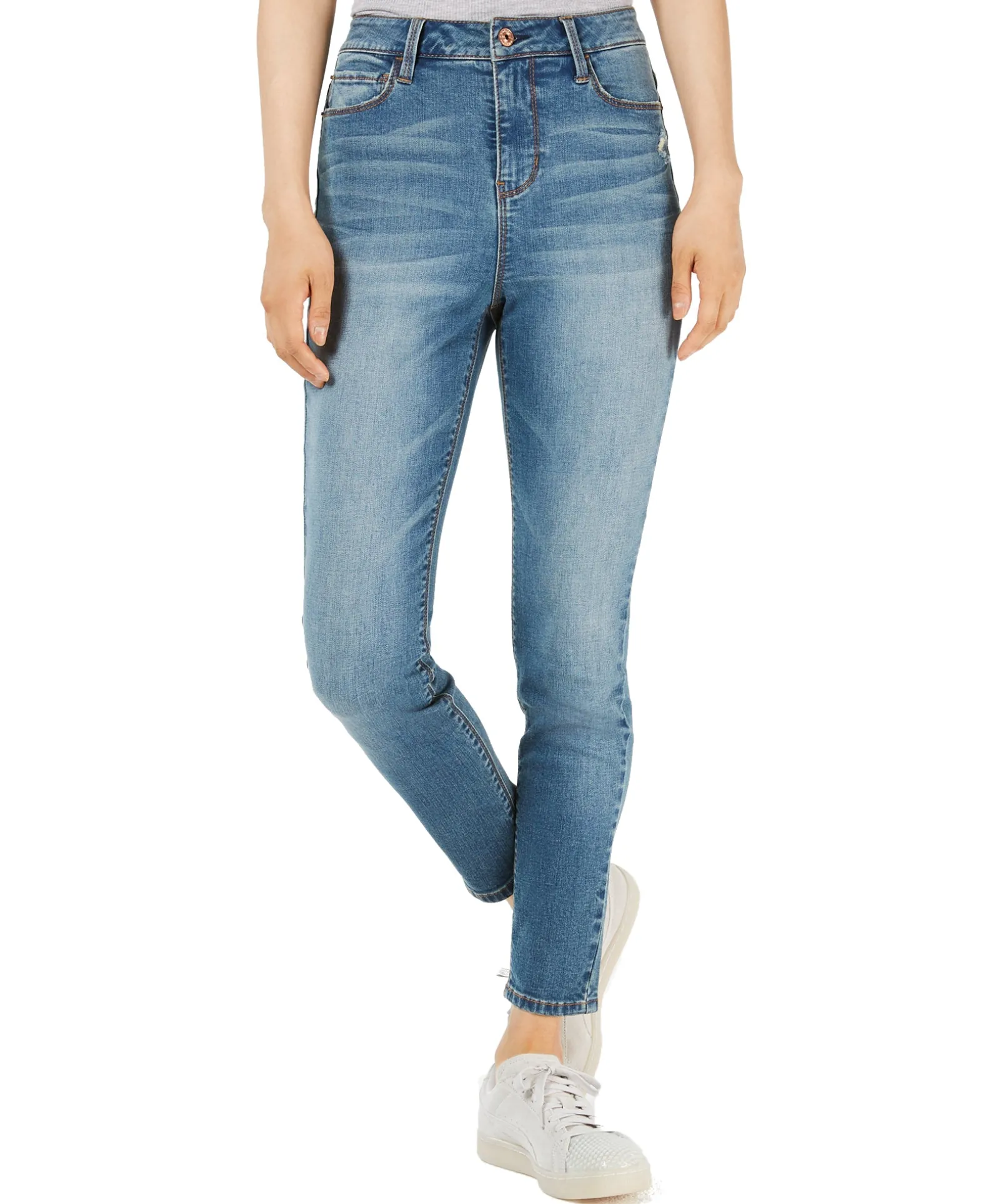 Get the look: Vanilla Star’s ripped and faded soft-stretch jeans flaunt a skinny fit and navel-grazing high waist.