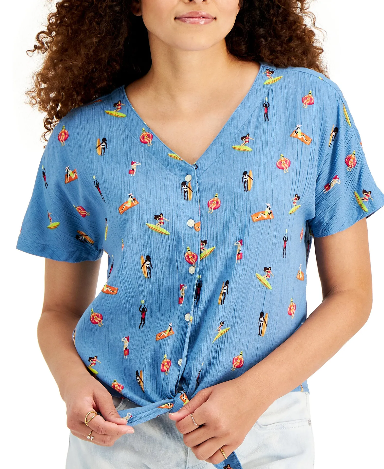 The Cutest Beach-Themed Print Enhances This Tie-Front V-Neck Top From Style & Co.