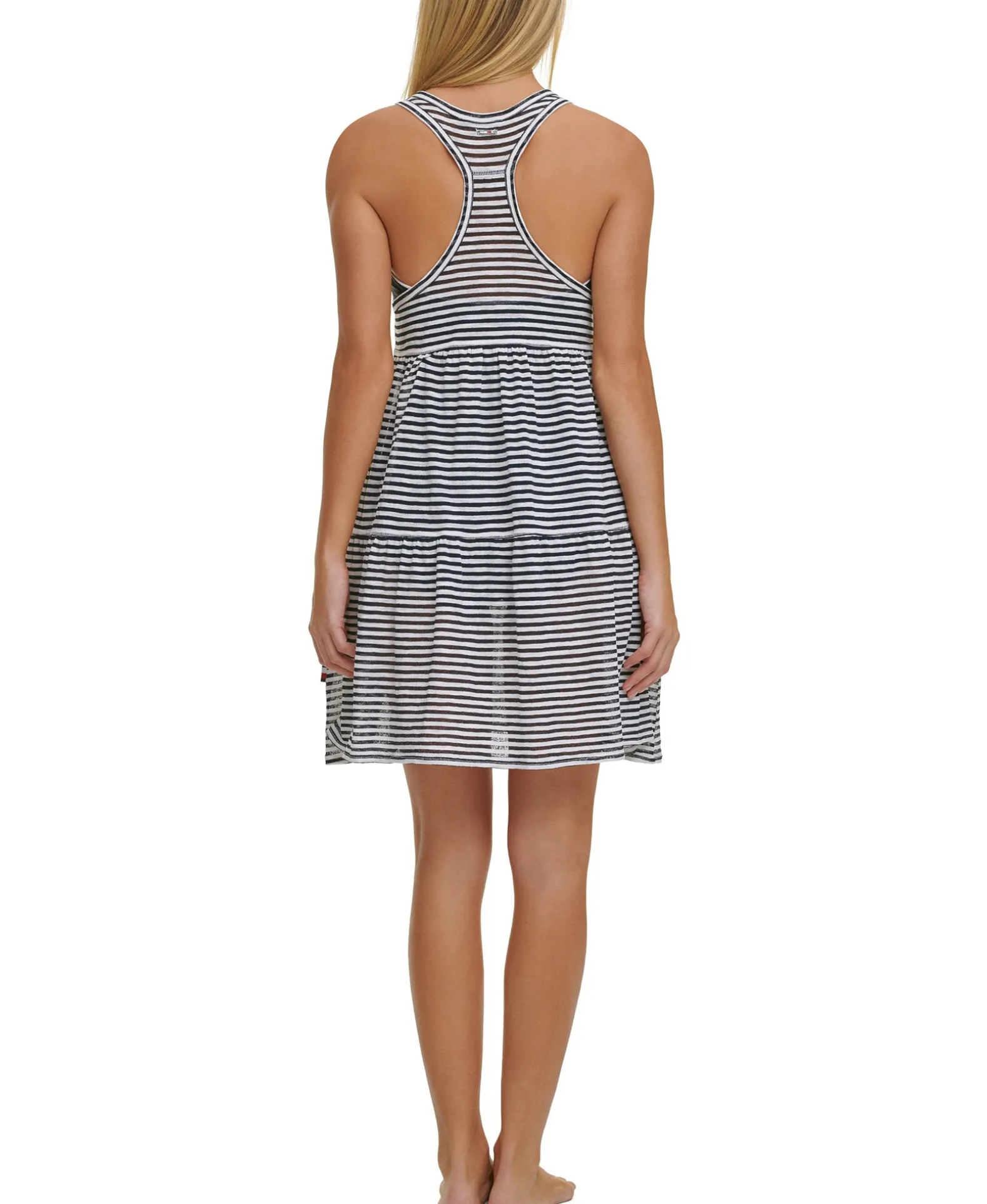 Breezy Beach Style Is So Effortless In This Cover-Up Dress From Tommy Hilfiger, A Sleeveless Pick Designed With Burnout Stripes And A Tiered Skirt.