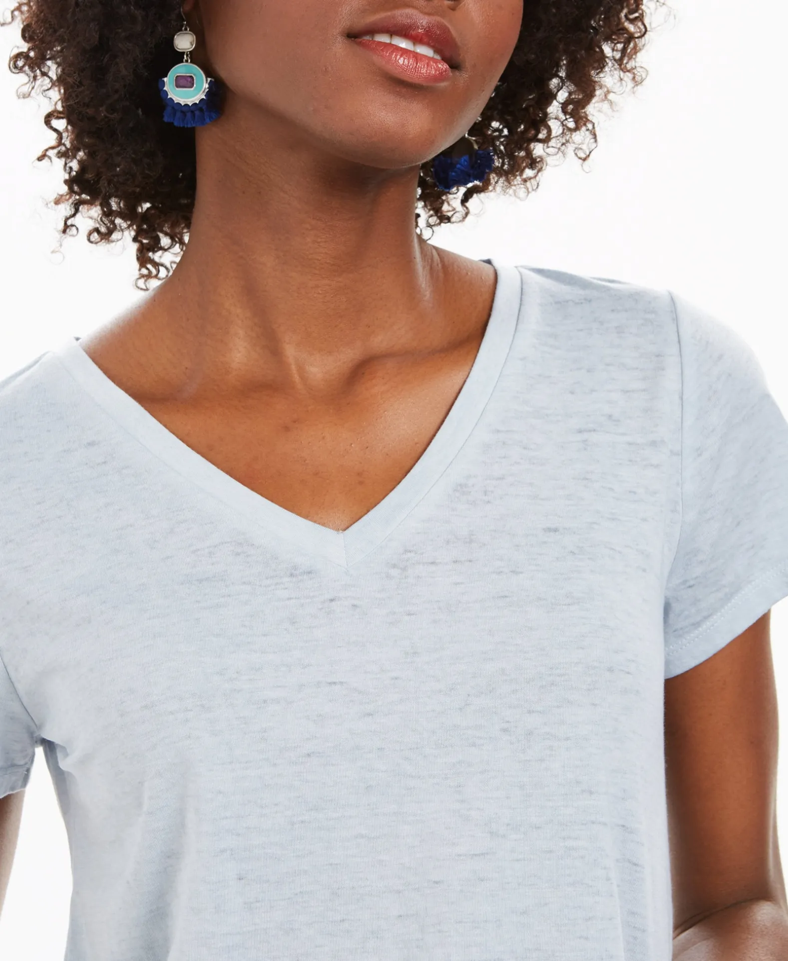 A Cool Burnout Look Refreshes The Comfortable Shape Of This V-Neck T-Shirt From Style & Co.