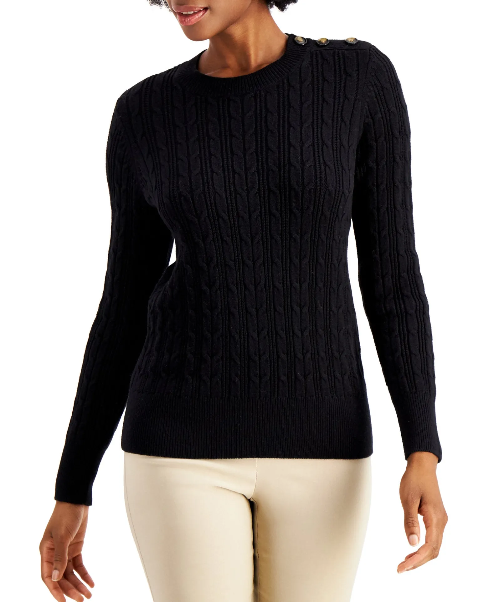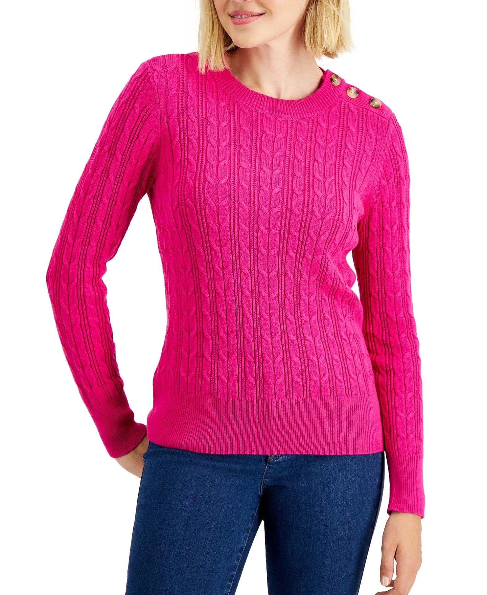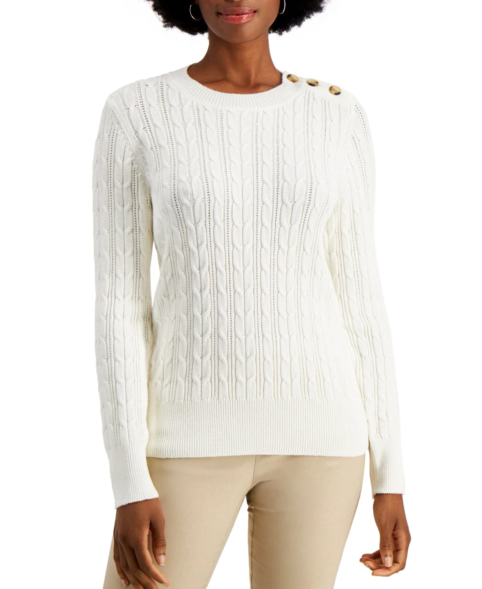 Charter Club’s Polka Cable-Knit Sweater With Button Details At The Shoulders Is A Polished Take On The Classic Wardrobe Staple.