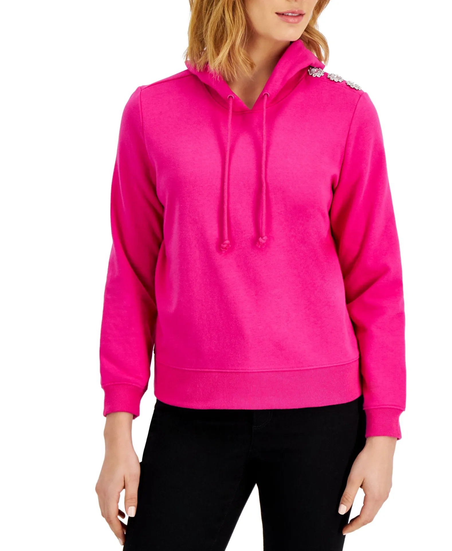 Buttons Accents Each Shoulder In This Cozy Hoodie From Charter Club, A Casual Pick Designed With Long Sleeves And A Relaxed Fit.