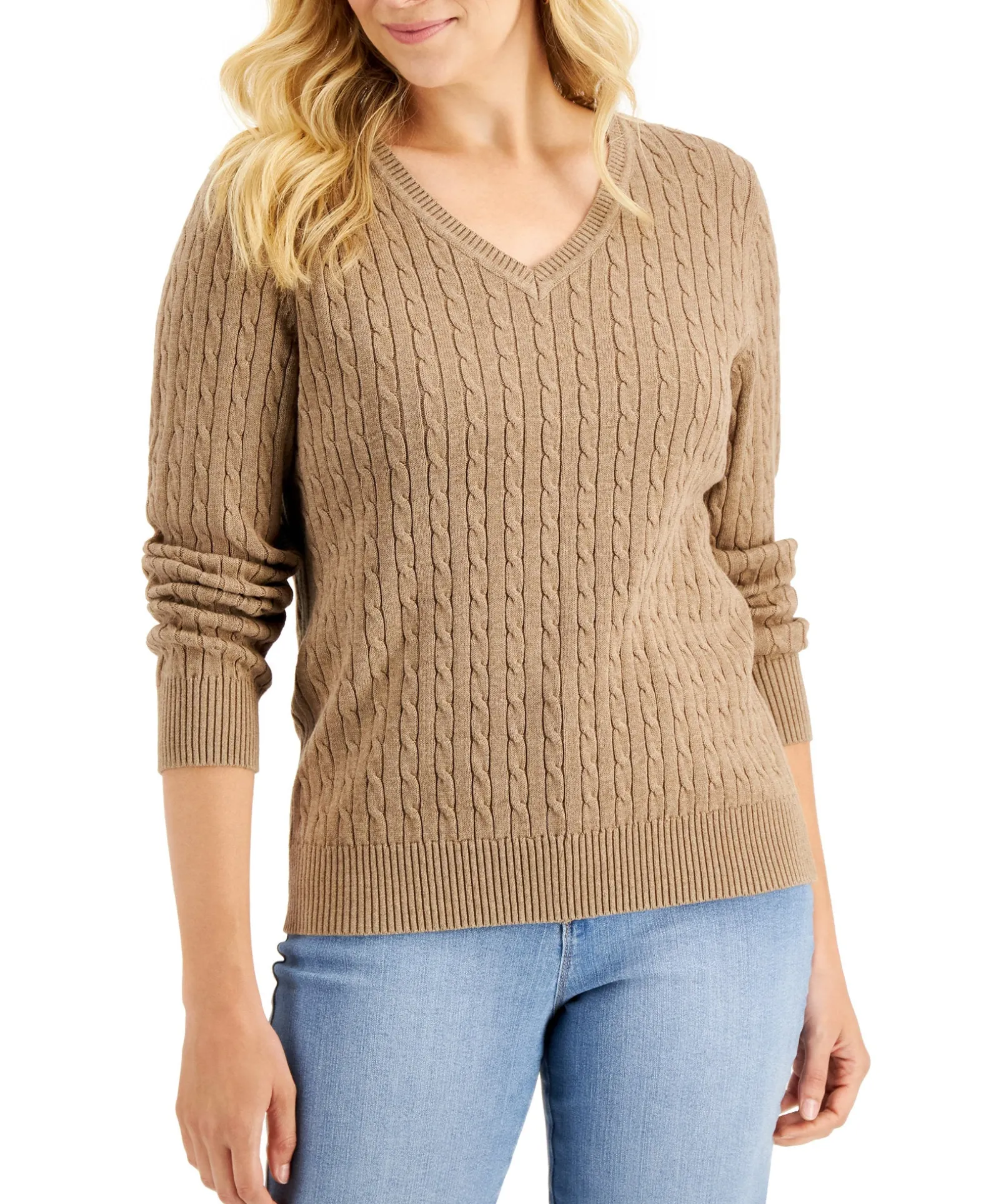 Made From 100% Cotton, This V-Neck, Cable-Knit Sweater From Karen Scott Is As Pretty As It Is Comfortable.