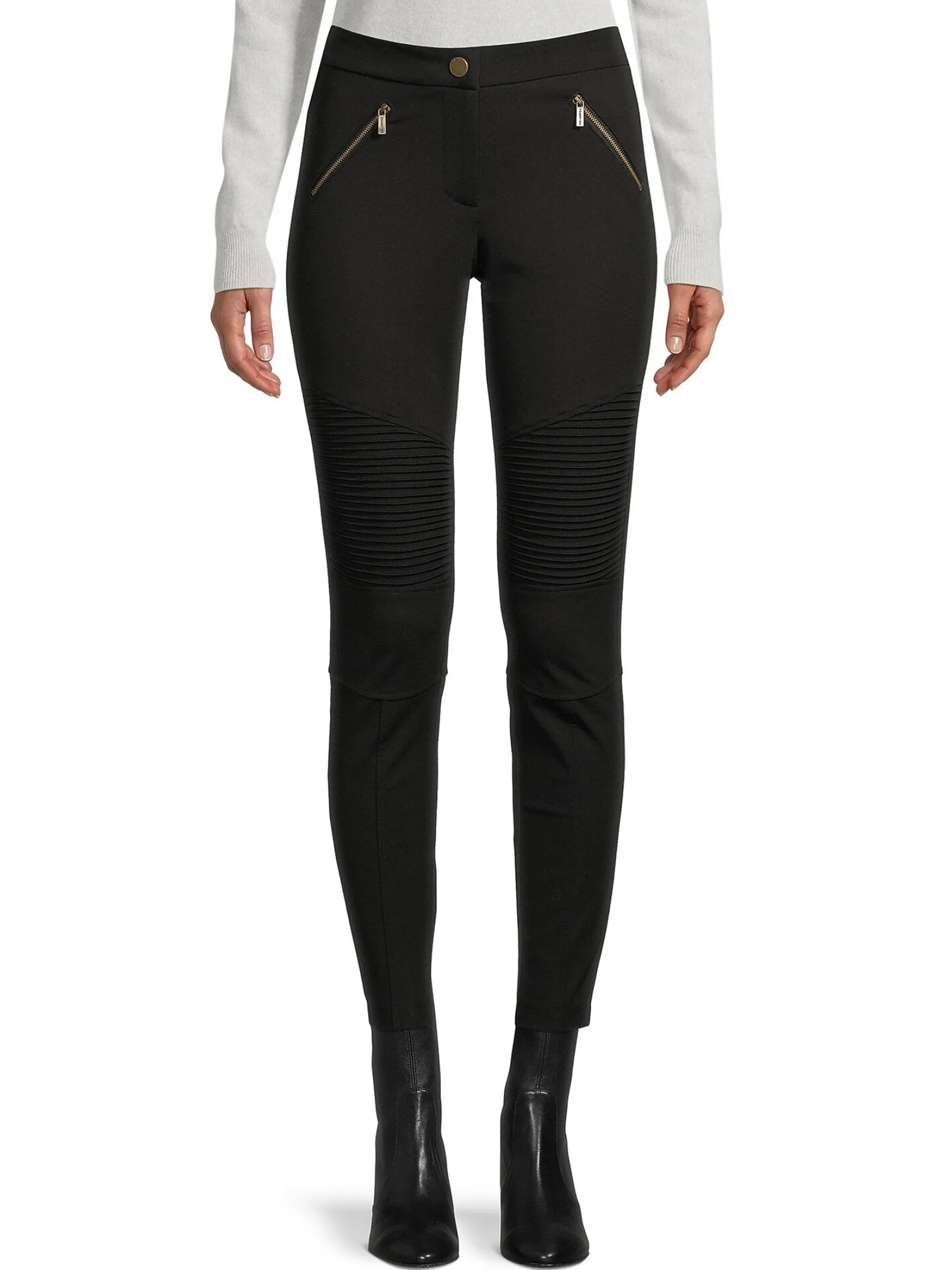 Fitted pants with ribbed moto detailing.