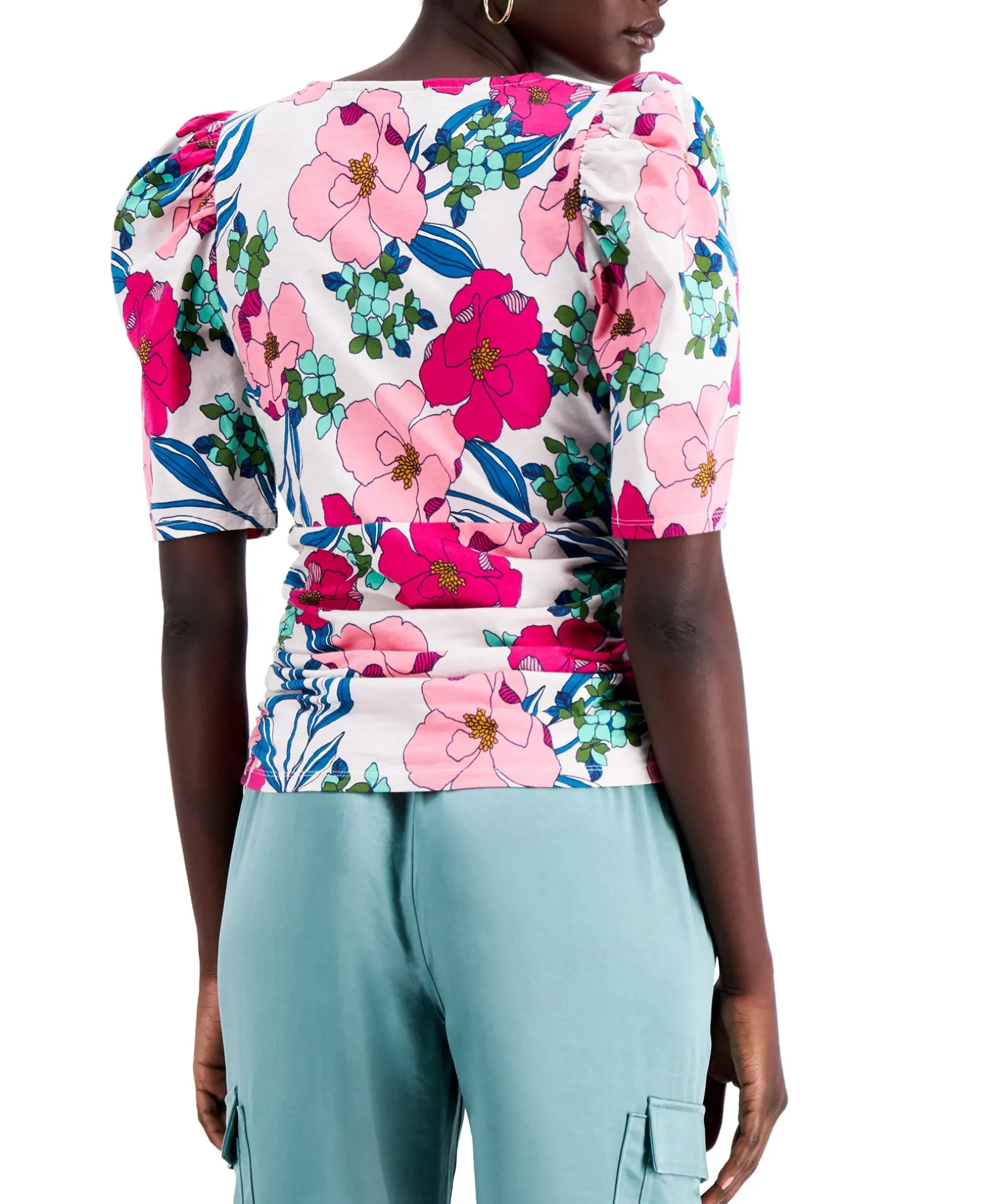 INC International Concepts® Offers Style In Spades With This Bold Floral-Inspired Top Designed In Cotton And Fashioned With Puff Sleeves.