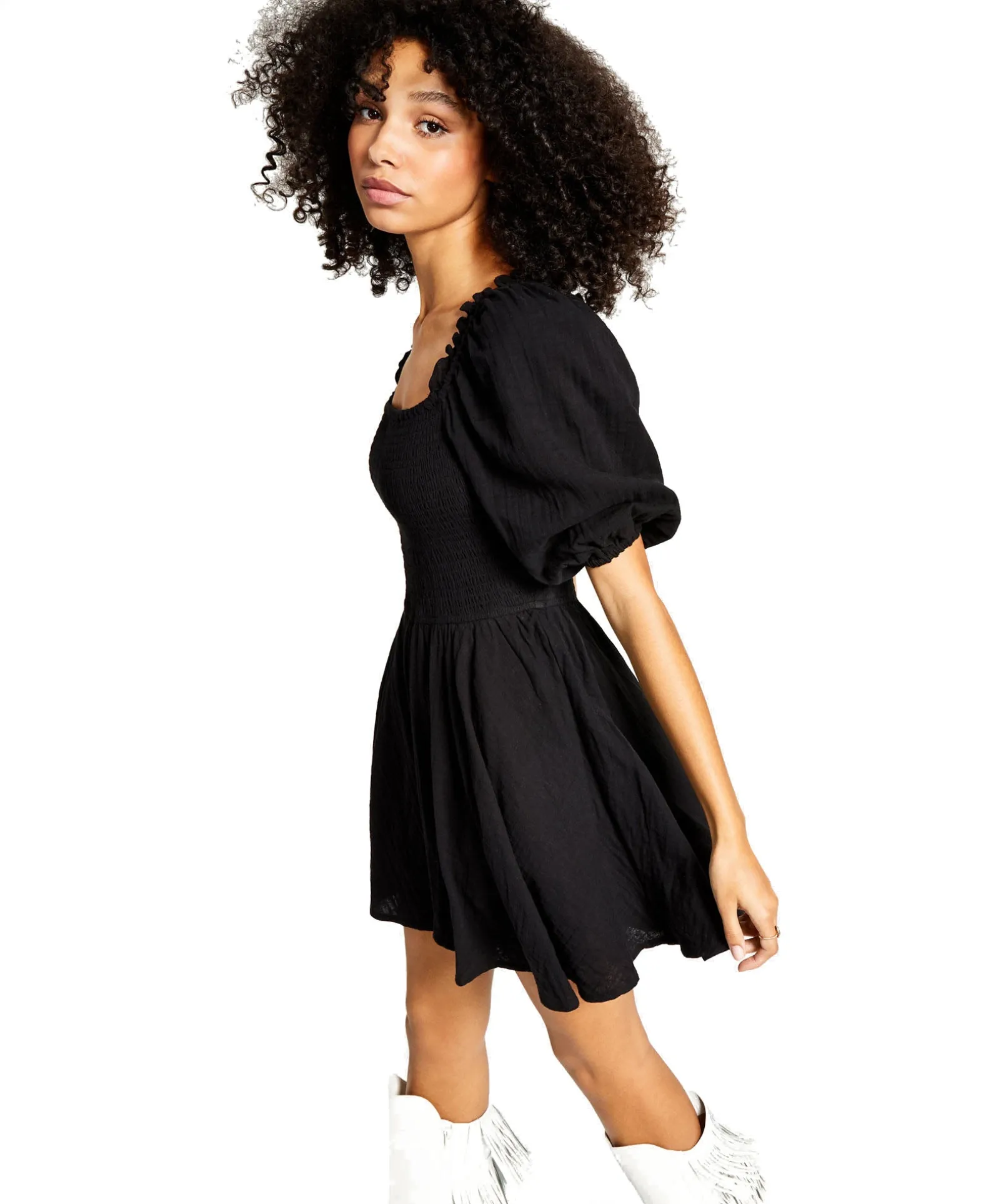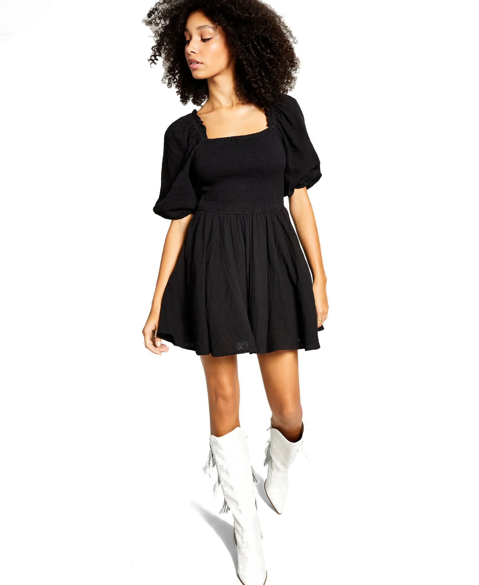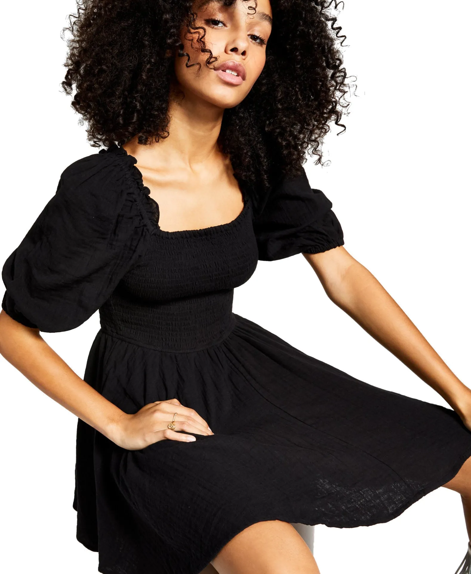 Mix Things Up In This Mini Cotton Fit &Amp; Flare Dress From And Now This Designed With A Smocked Bodice And Cute Puff Sleeves.