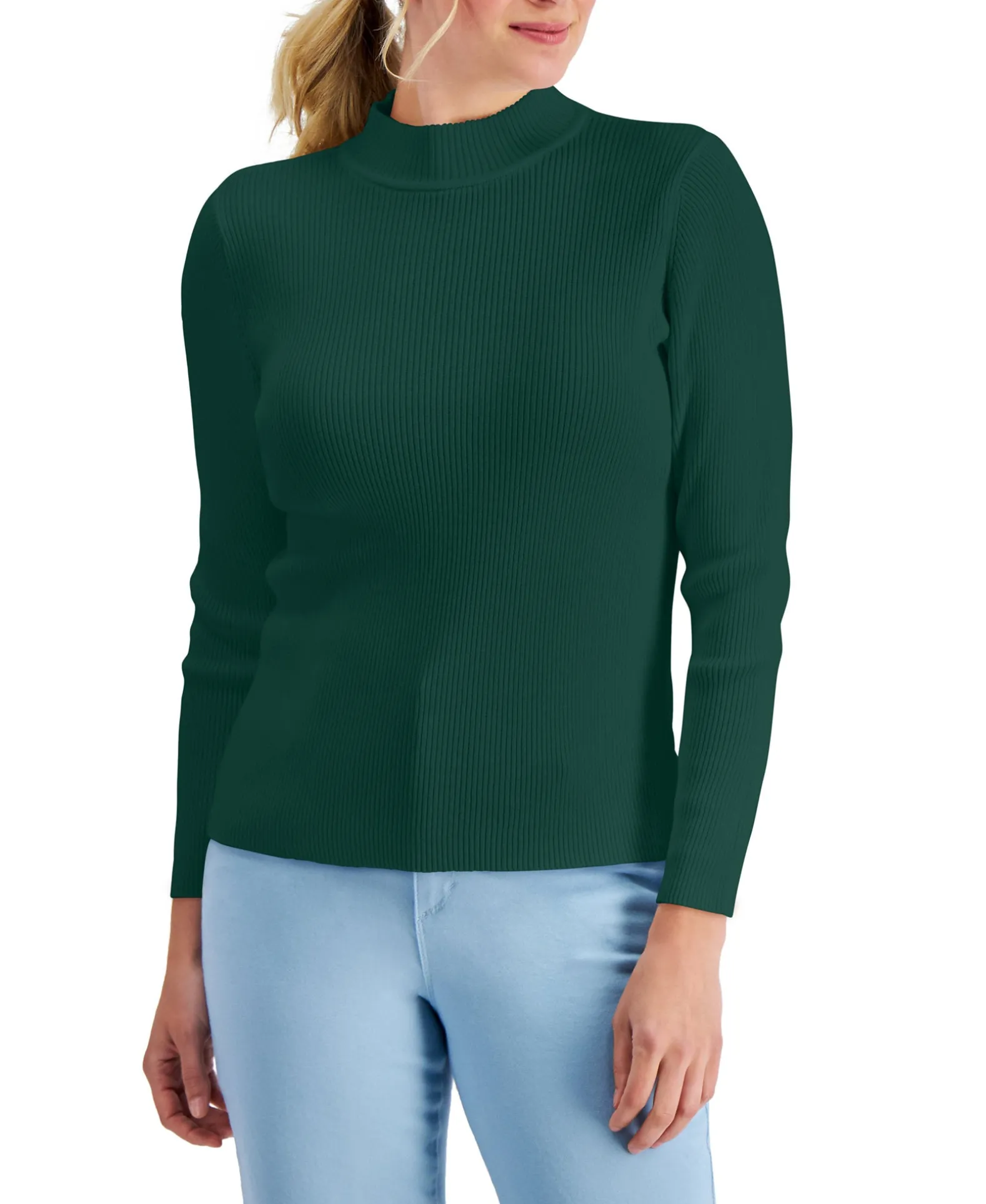 Styled In Comfy Cotton Rib, This Pullover Sweater From Karen Scott Features A Sophisticated Mock Neckline.