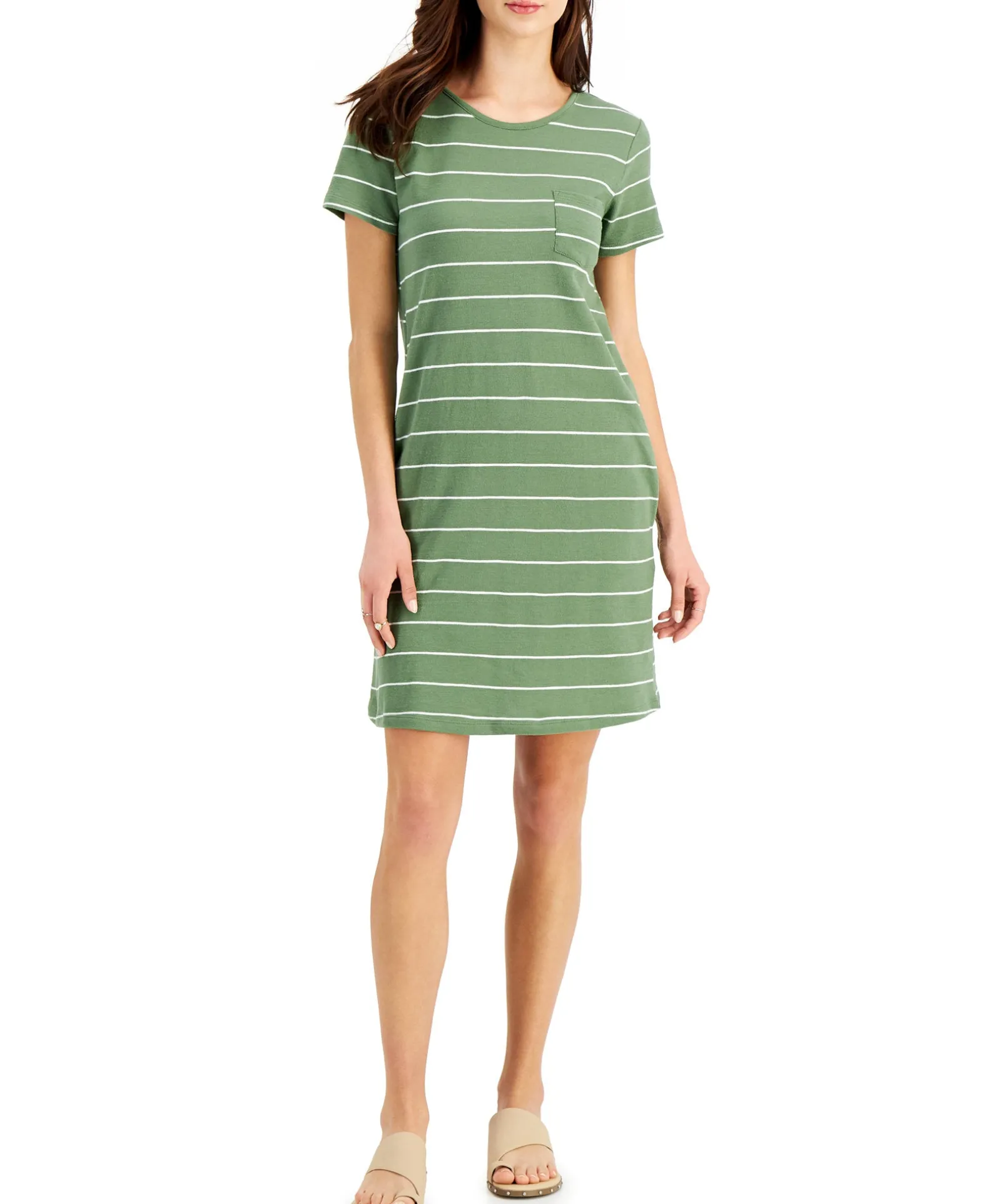 Style & Co’s Fresh Cotton T-Shirt Dress Is A Cute, Casual Pick Designed Entirely In Classic Stripes.