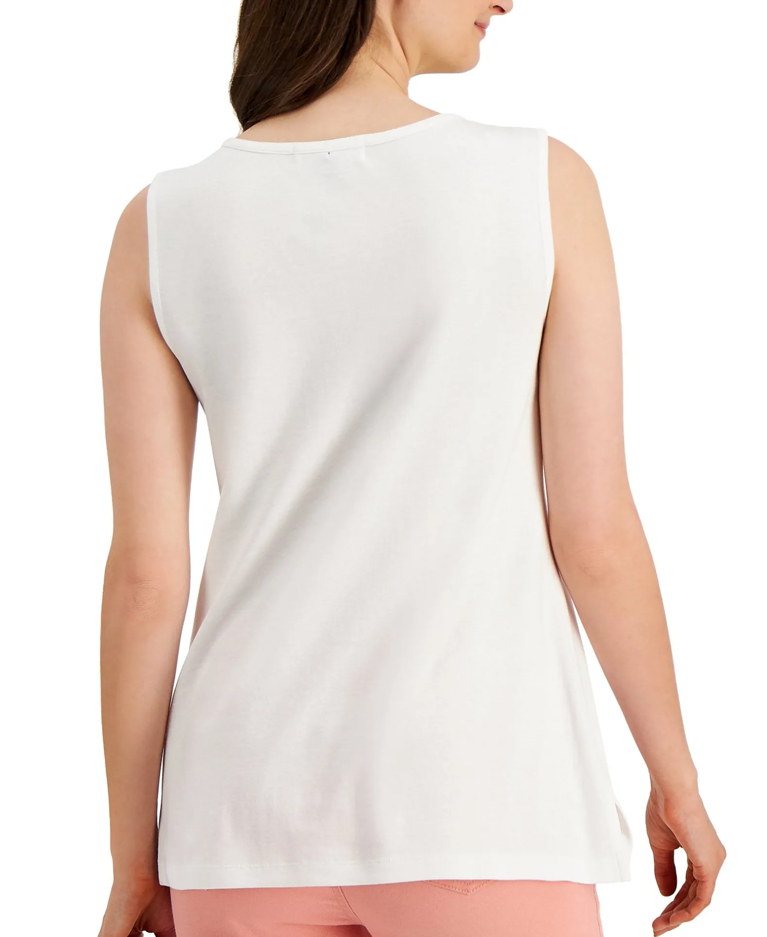 Upgrade Your Wardrobe With This Stylish Staple From Karen Scott; This Solid Print Sleeveless Top Is The Perfect Foundation Piece For Layering.