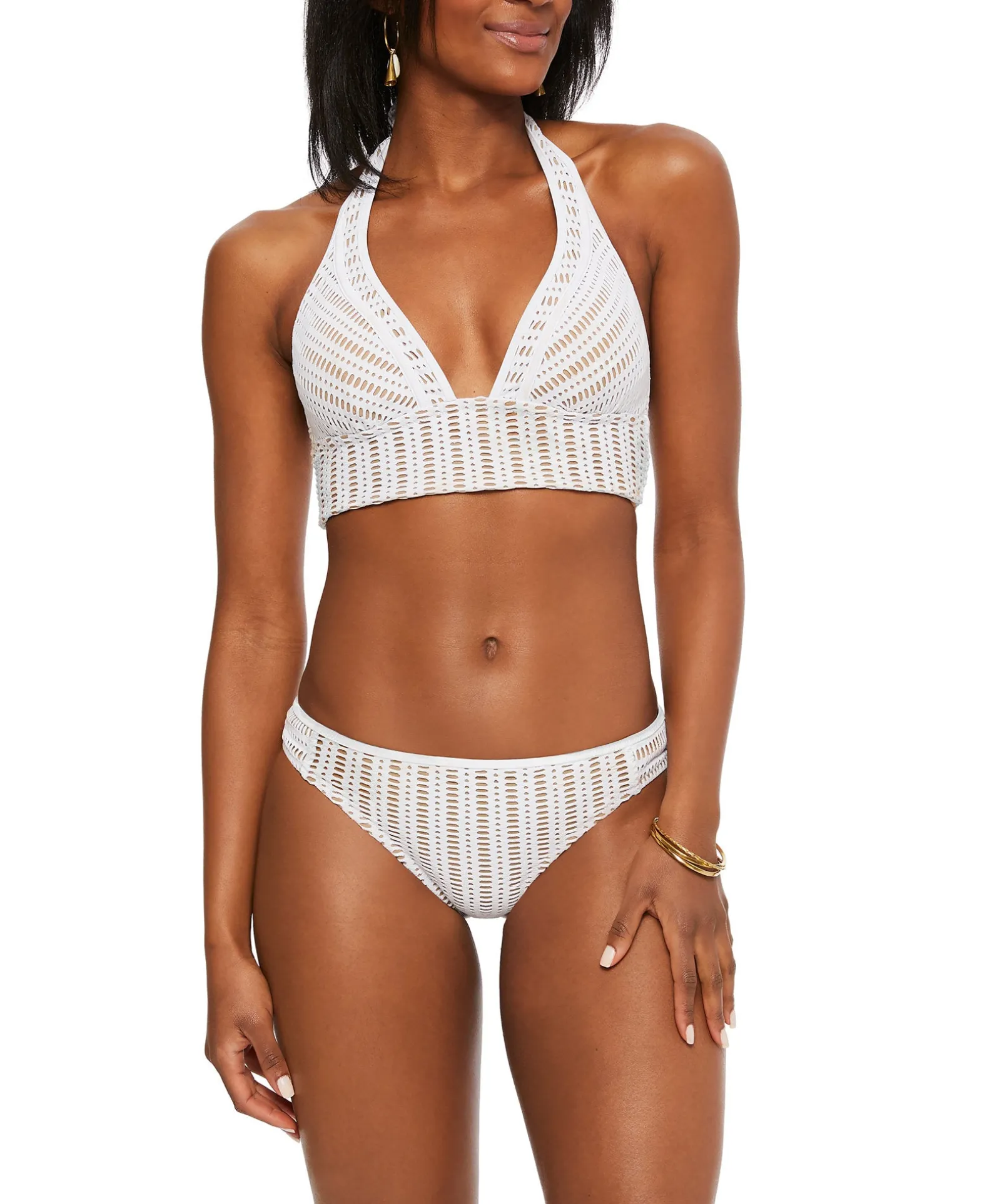 Chic Style For A Dip In The Pool: Bar III’s Crochet-Style Bikini Top Feature Classic Halter Straps And A Longline Look.