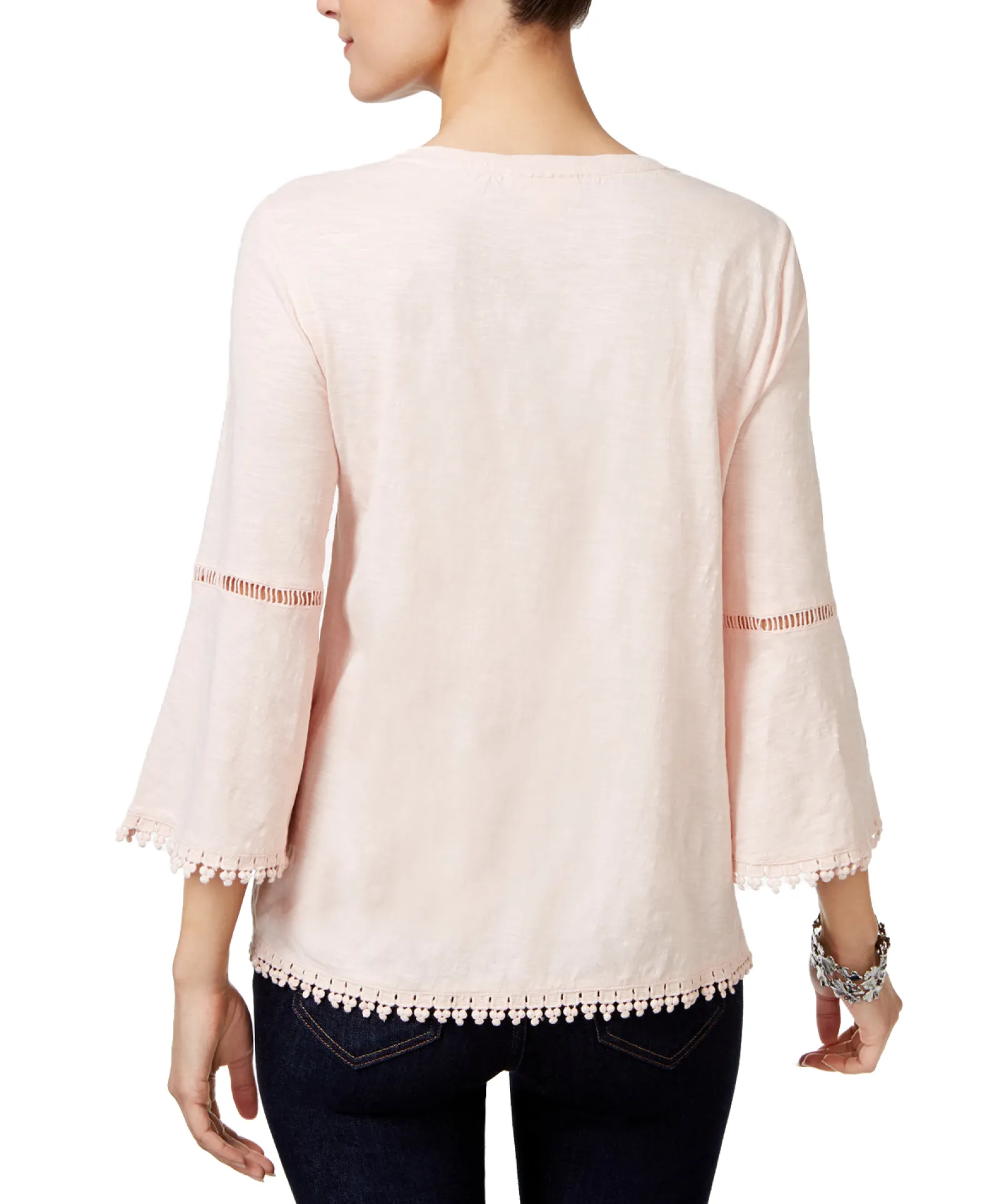 Crochet trim elevates the casual feel of this bell-sleeve top from Style & Co.