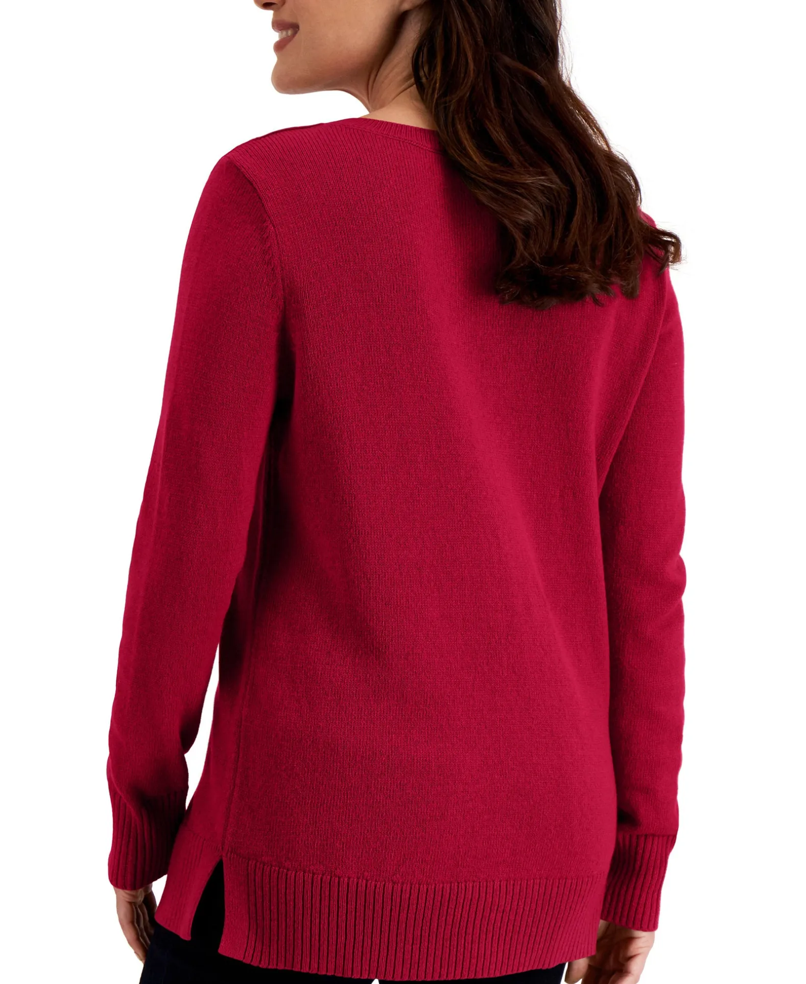 Ribbed Trims And A Subtle Crossover-Detail V-Neck Enhance The Cozy Appeal Of This Pullover Sweater From Karen Scott.