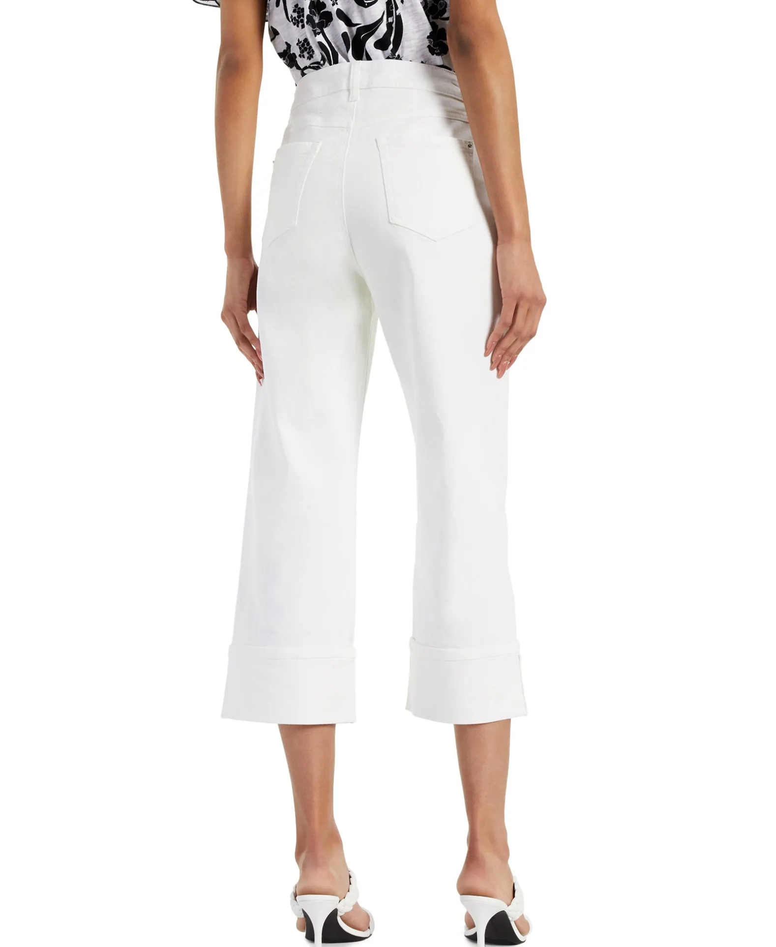 - Cropped wide legs with cuffed hems
