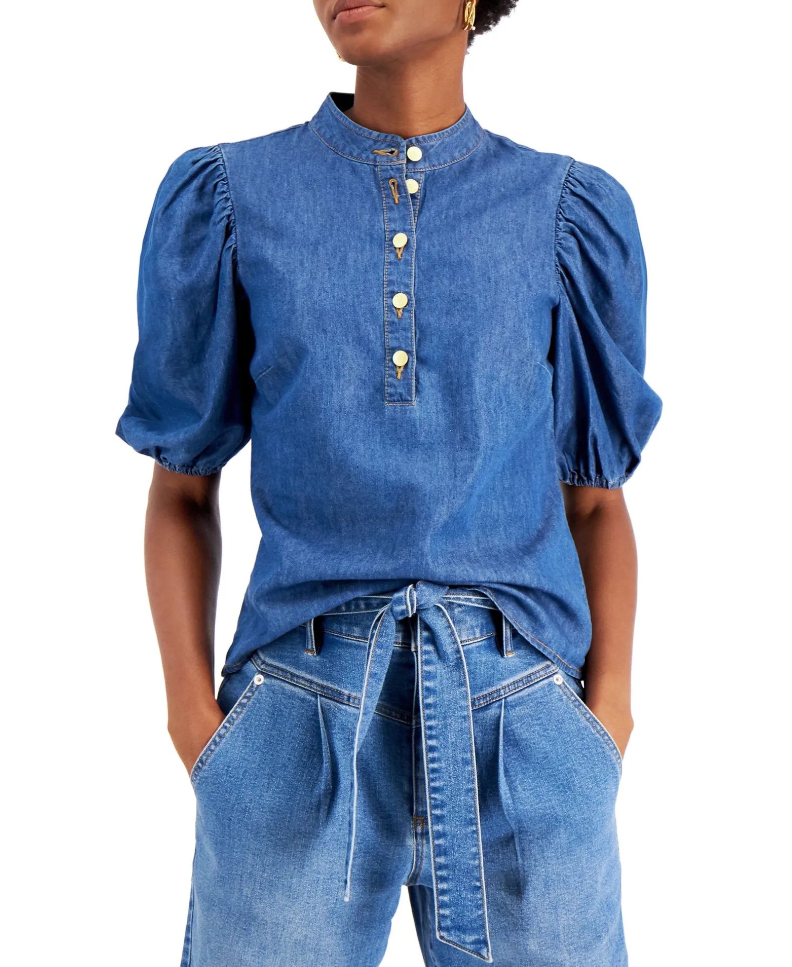 A Little Volume Goes A Long Way On This Puff-Sleeve Top From INC International Concepts® In Casual-Cool Denim.