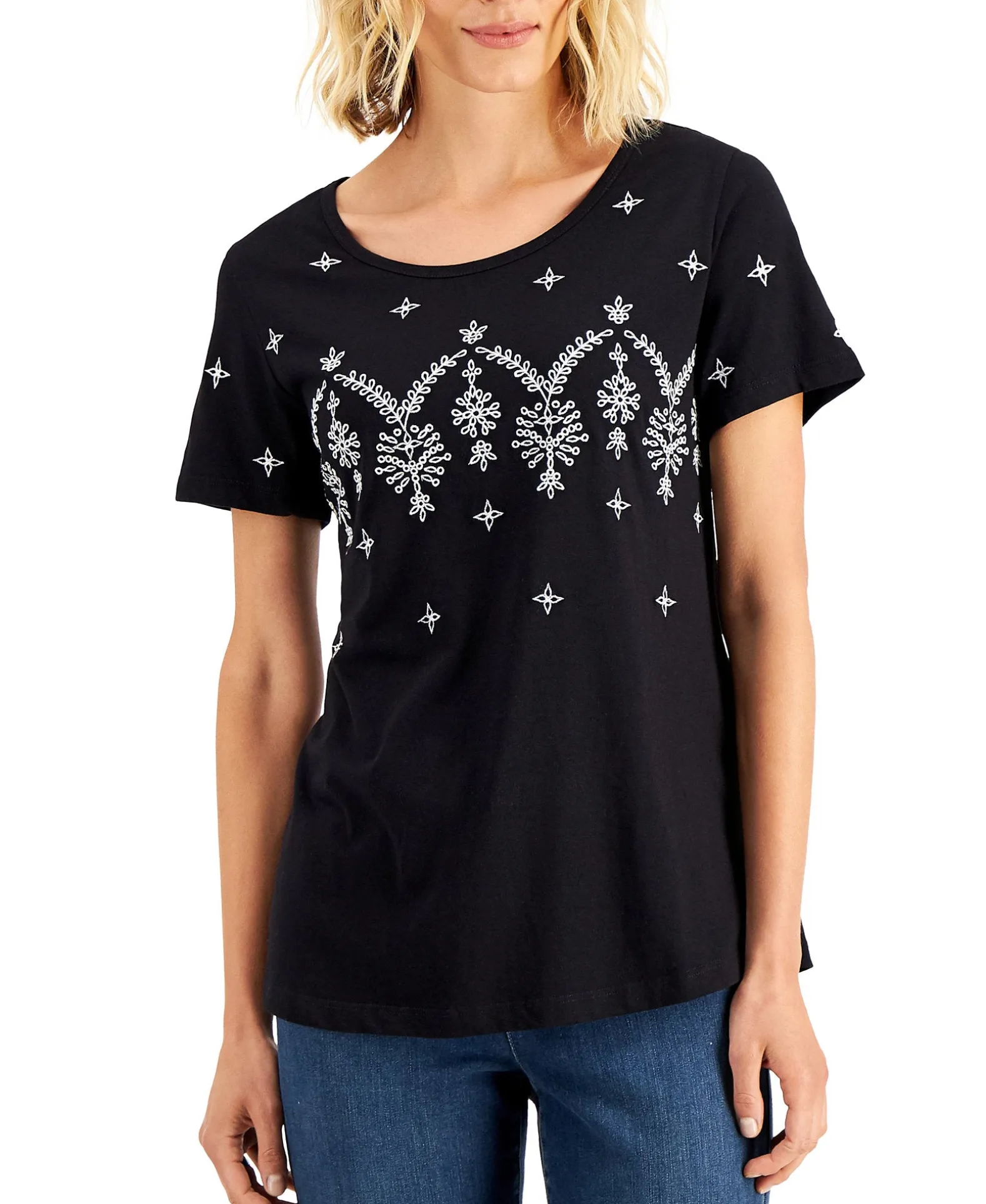 Elegant Embroidery Elevates This Look From Karen Scott, A Jersey Top With An Easy Feel.