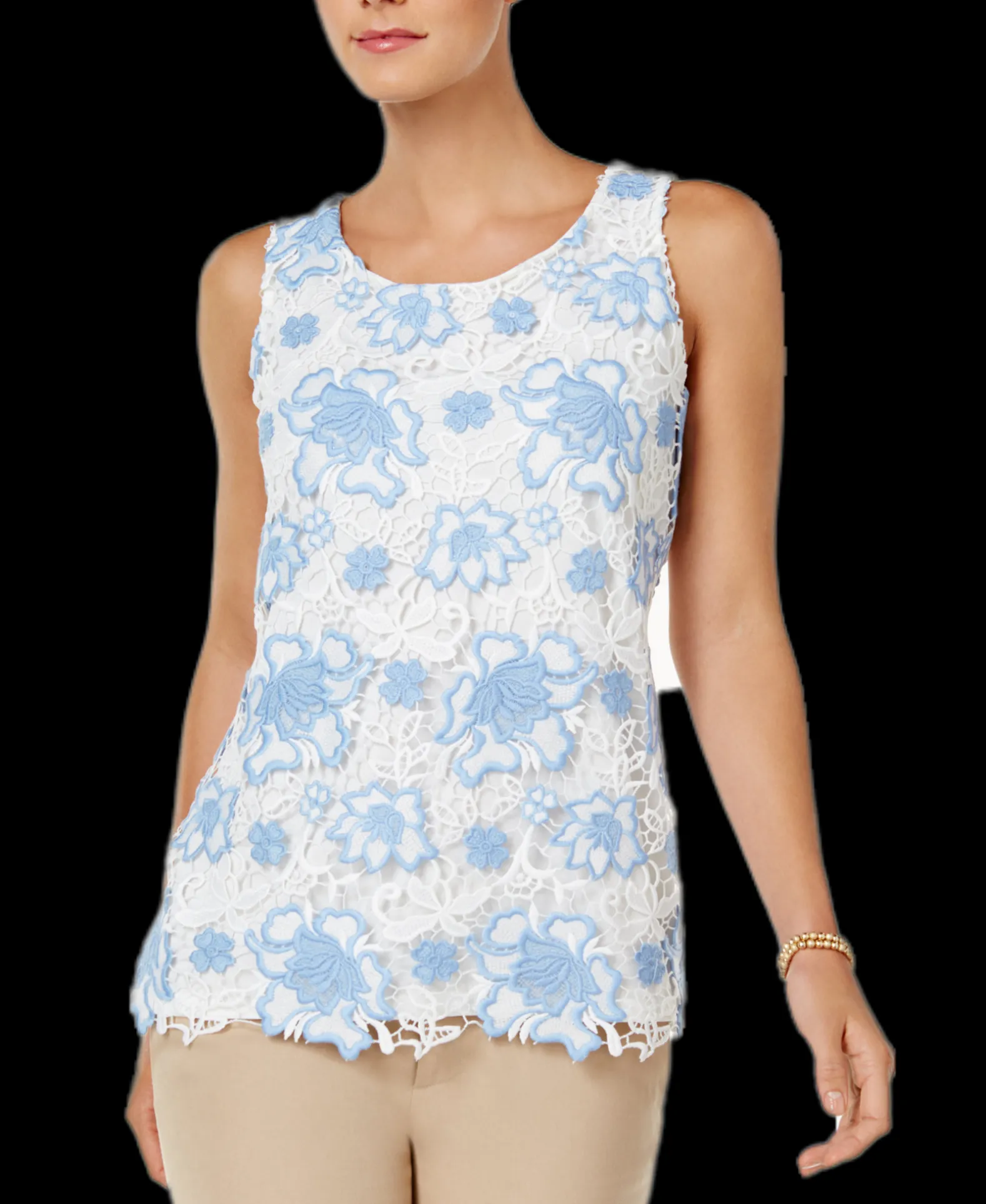 Charter Club steps up the luxe appeal in this tank top featuring eye catching lace overlay.