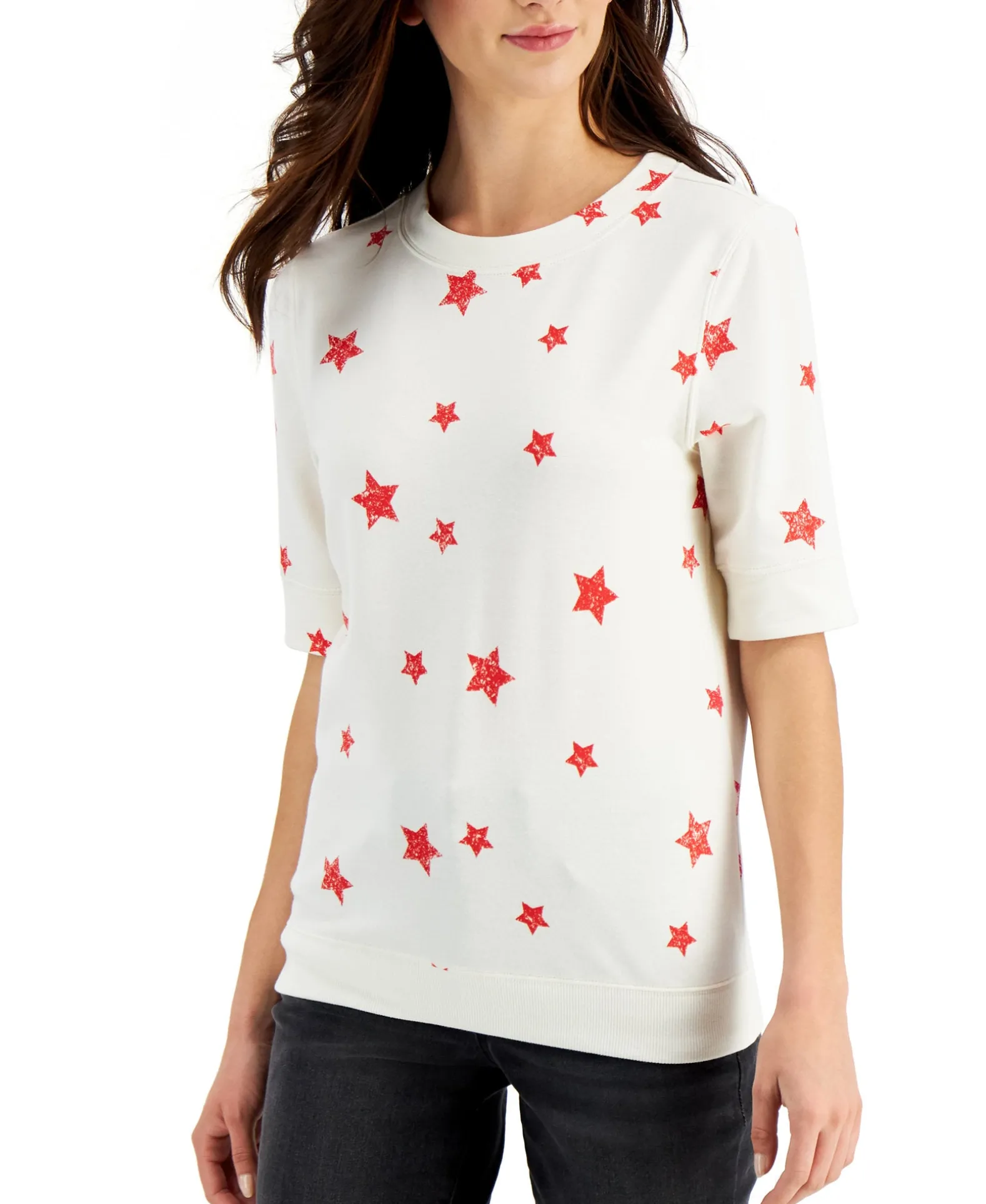 A New Wardrobe Favorite From Style &Amp; Co, This Short-Sleeve Sweatshirt Features A Playful Star Print Throughout.