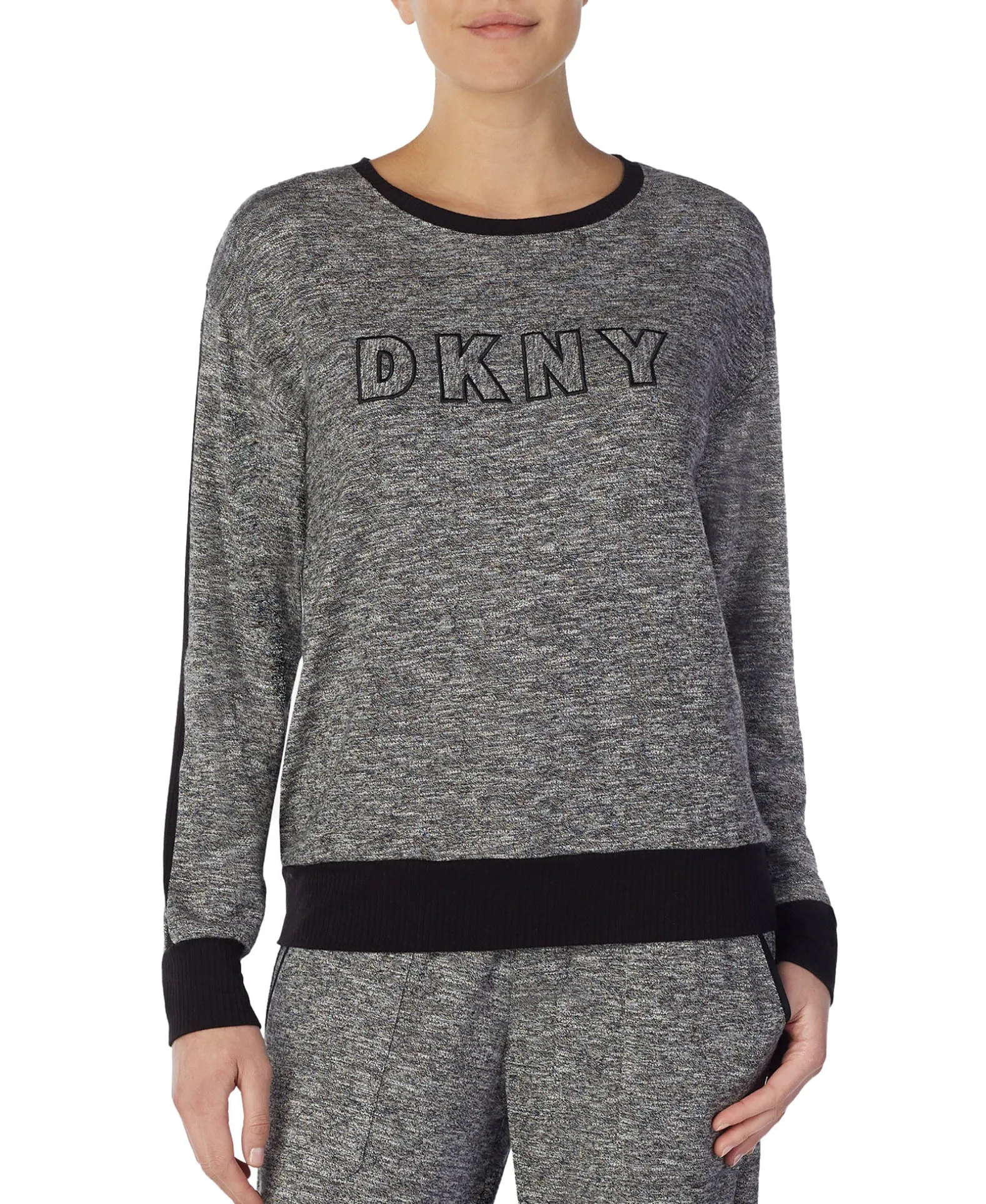 Styled with signature logo details, DKNY’s long-sleeve pullover pajama top is a cozy choice for relaxing.