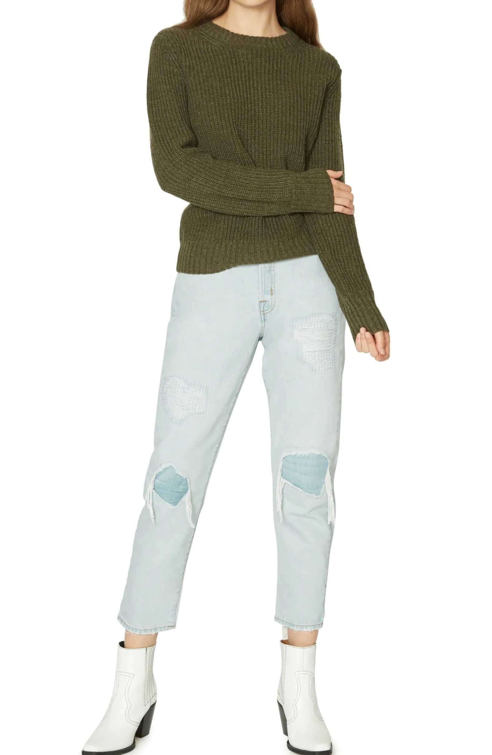 An airy open back enlivens this cozy knit pullover that chics up any cold-weather day.