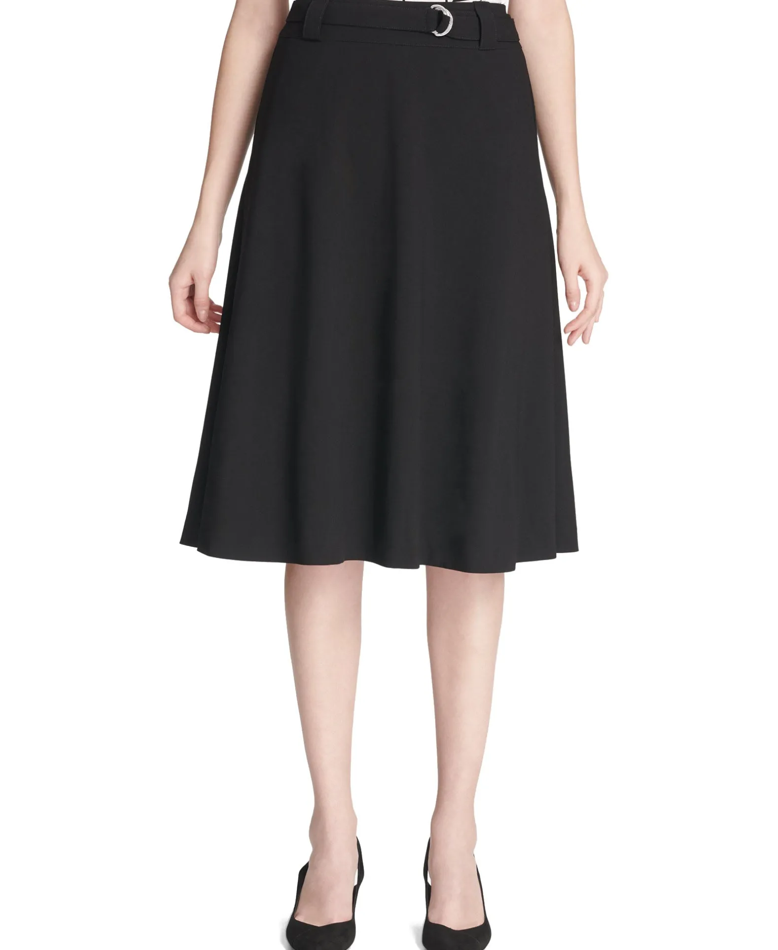 Create endless career ensembles with this petite calvin klein skirt, designed with a classic a-line silhouette and a flattering belted waist.