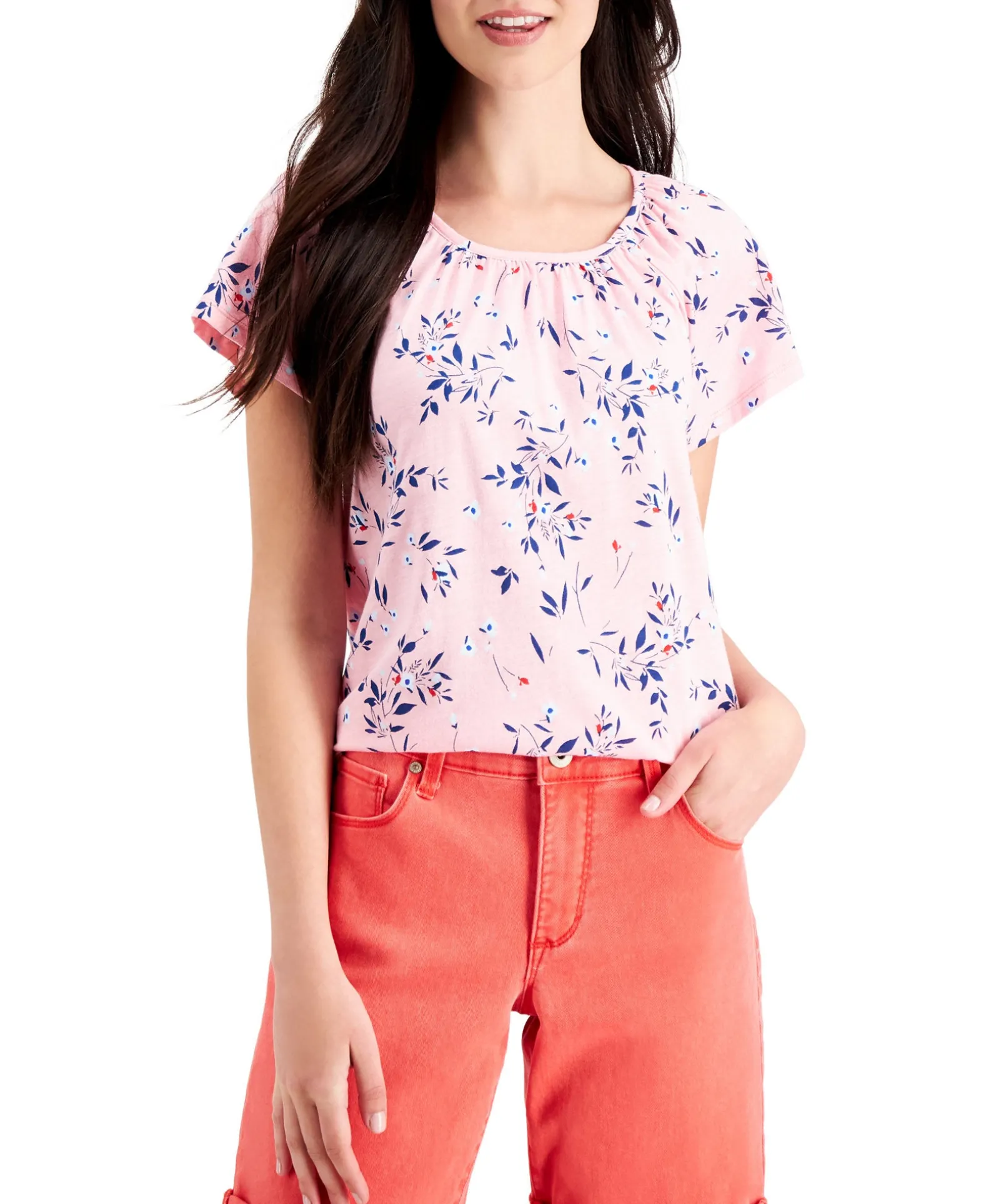 A Beautifully Pleated Neckline Brings Added Dimension To The Dainty Floral Print Throughout This Petite Style & Co Top.