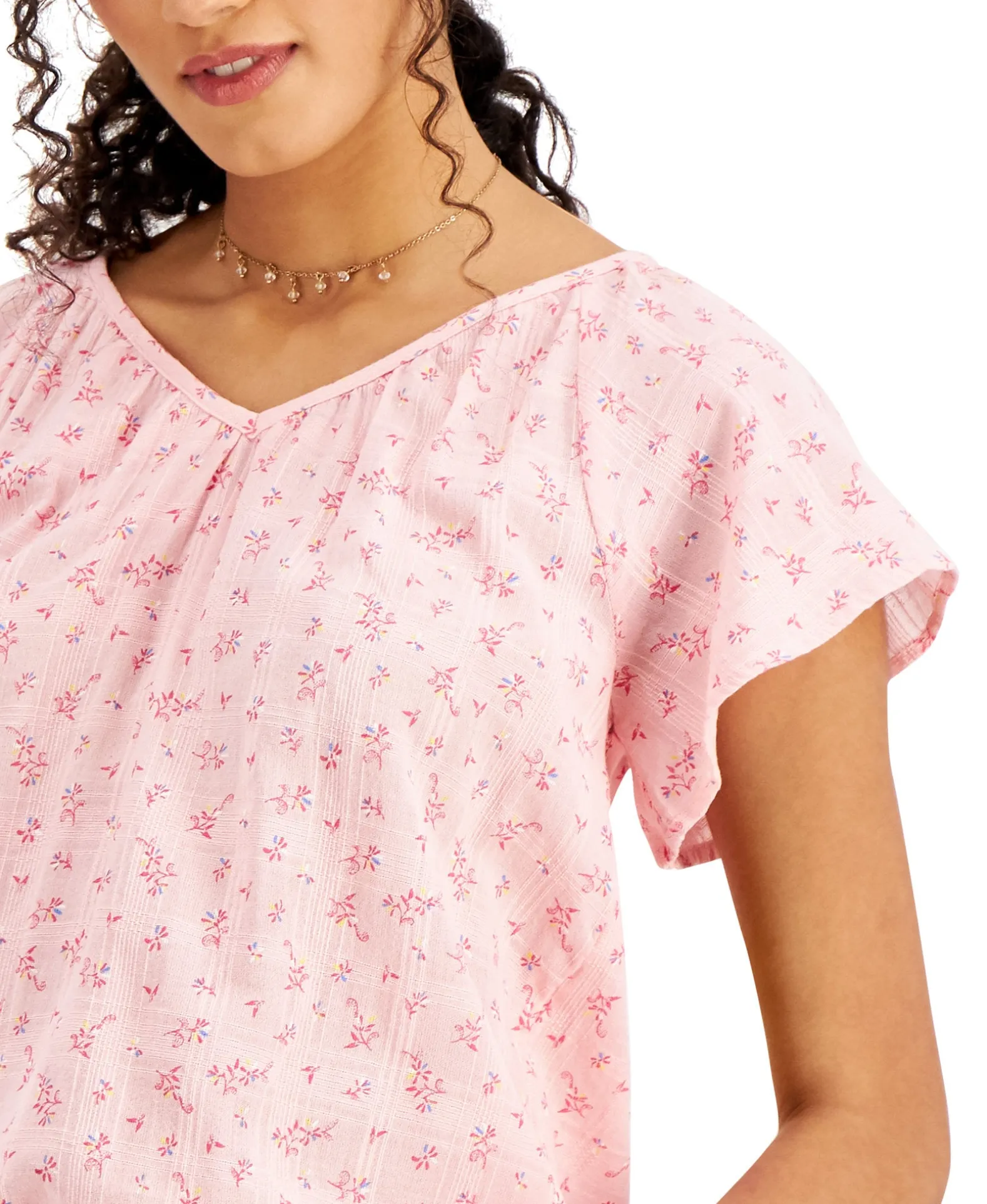 Style & Co Keeps You Breezy And Chic With This V-Neck Top In A Flounce Cap-Sleeve Motif And A Vibrant Floral Print.