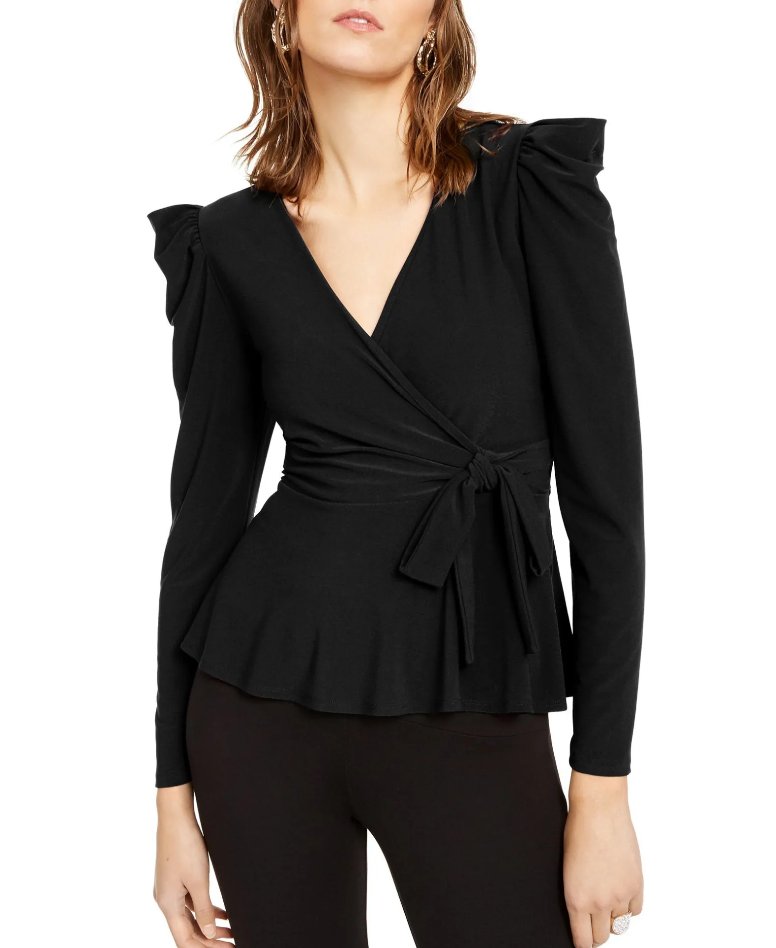This Petite Top From INC International Concepts Features Puff Shoulders And A Peplum Hem, A Welcome Update To A Flattering Wrap Silhouette.