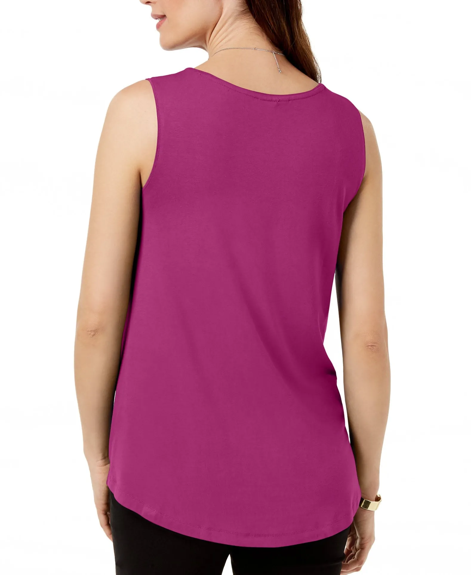 Versatile And Ideal For Layering, JM Collection’s Petite Sleeveless Top Is Finished With A Softly Curved Shirttail Hem.